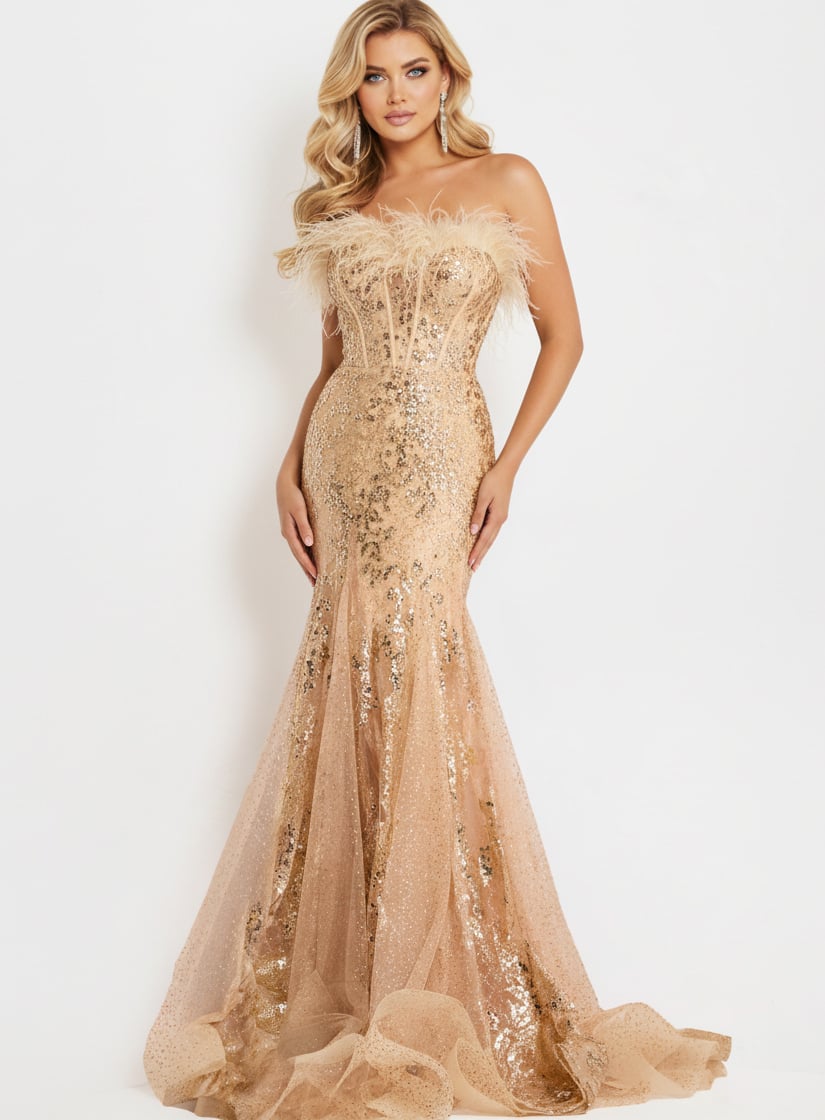 Strapless Feather Sequin Gown 48465