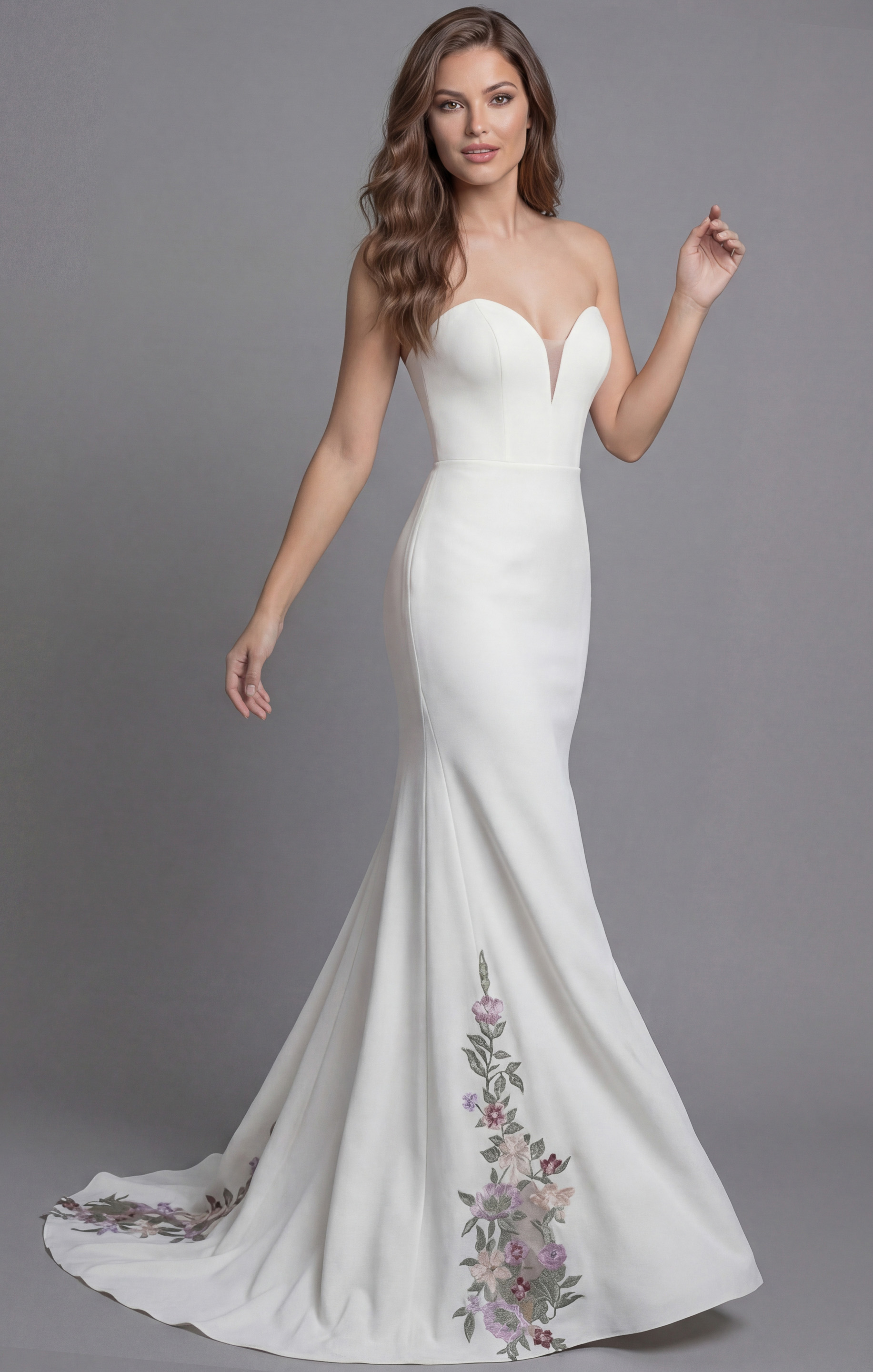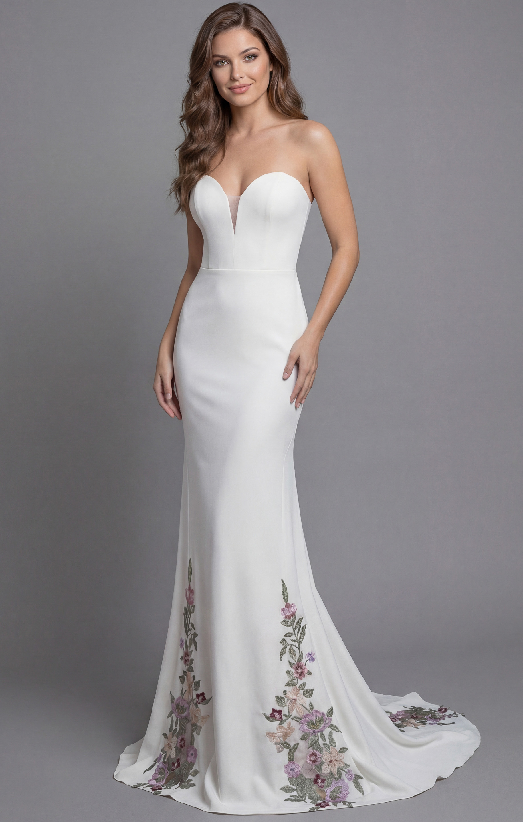 Strapless Fitted Gown with Floral Embroidered Train JB43902