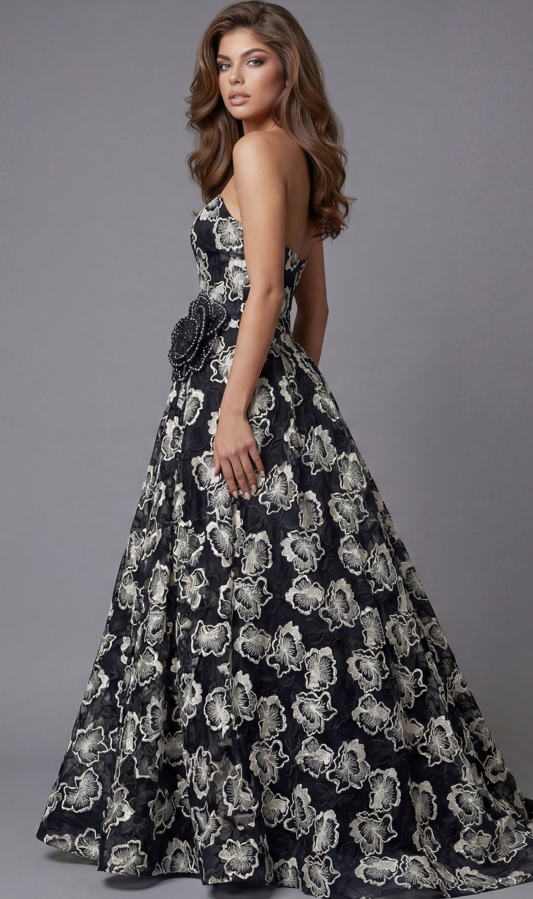 Strapless Floral Ball Gown With Sculpted Bodice 45499