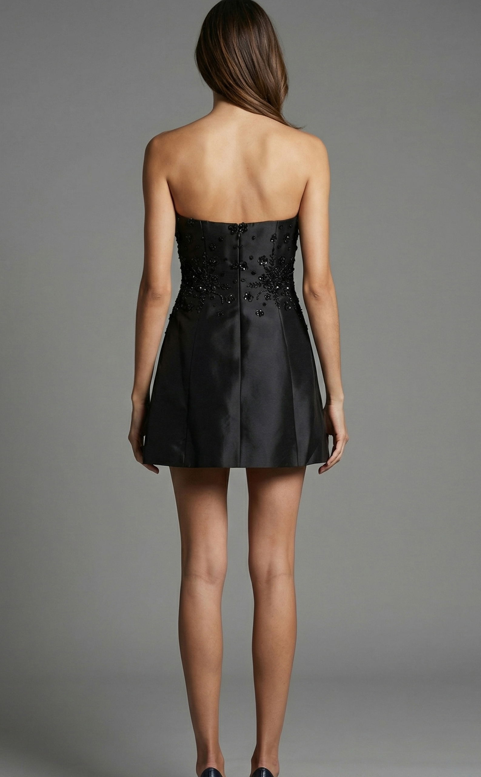 Strapless Floral Embellished A-Line Mini Dress 44855
