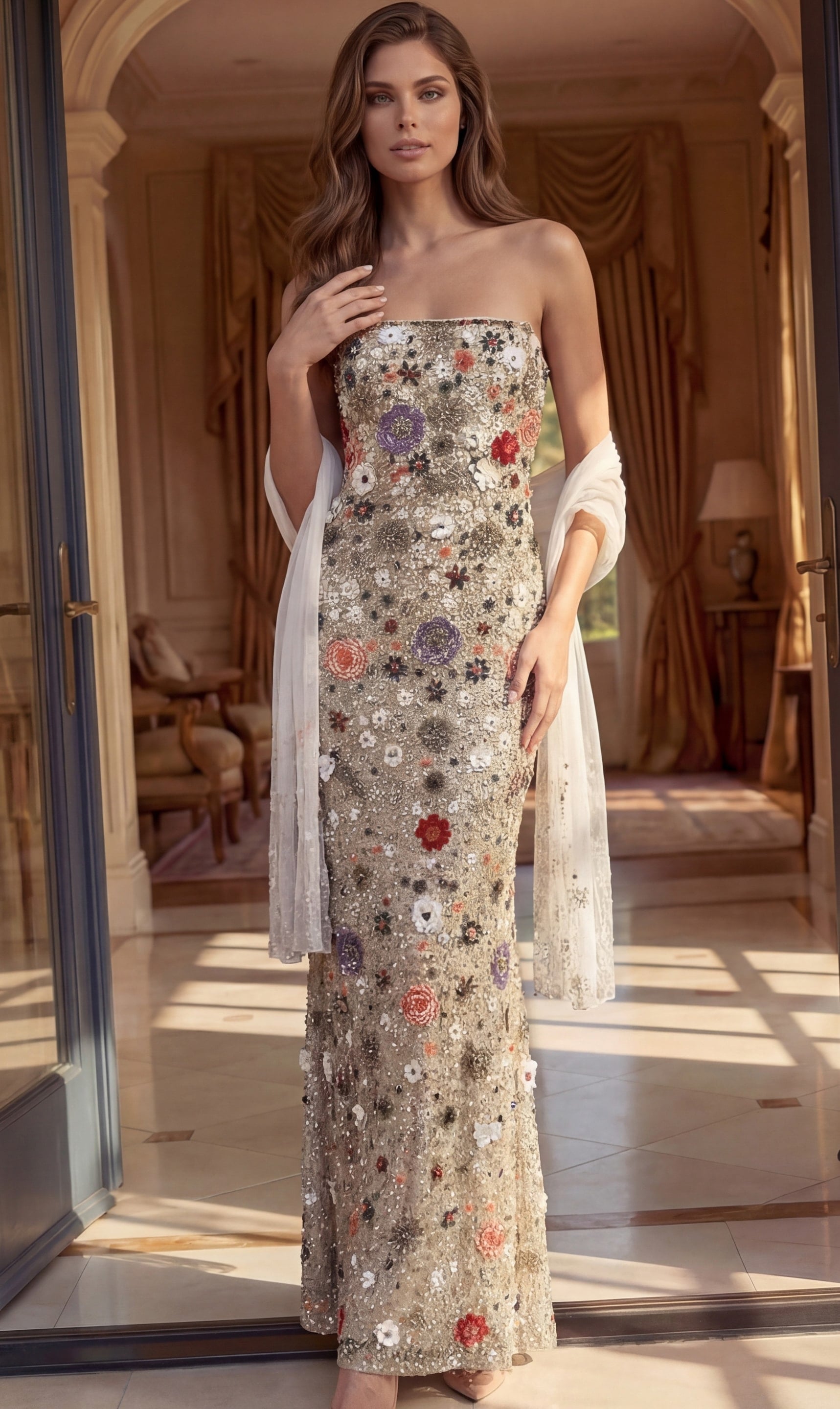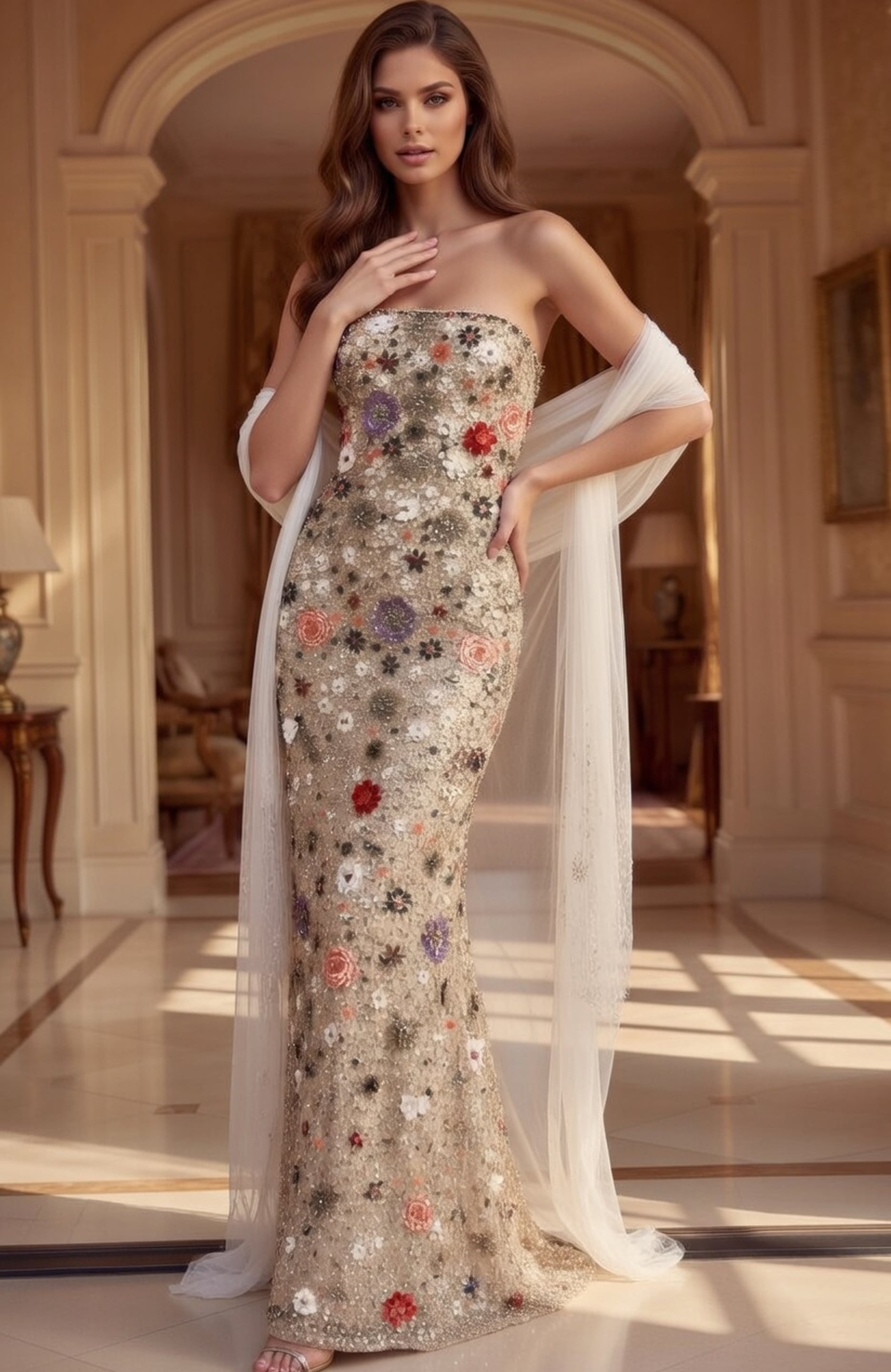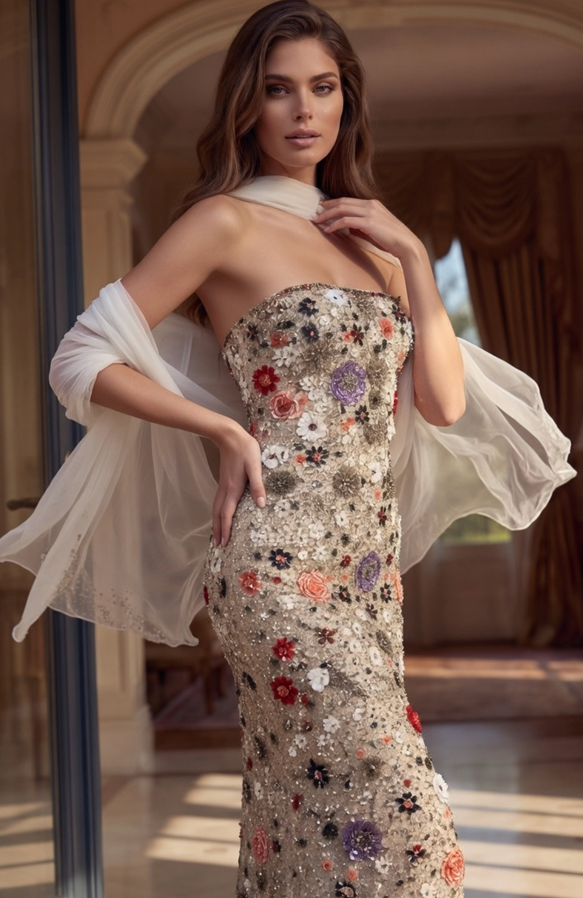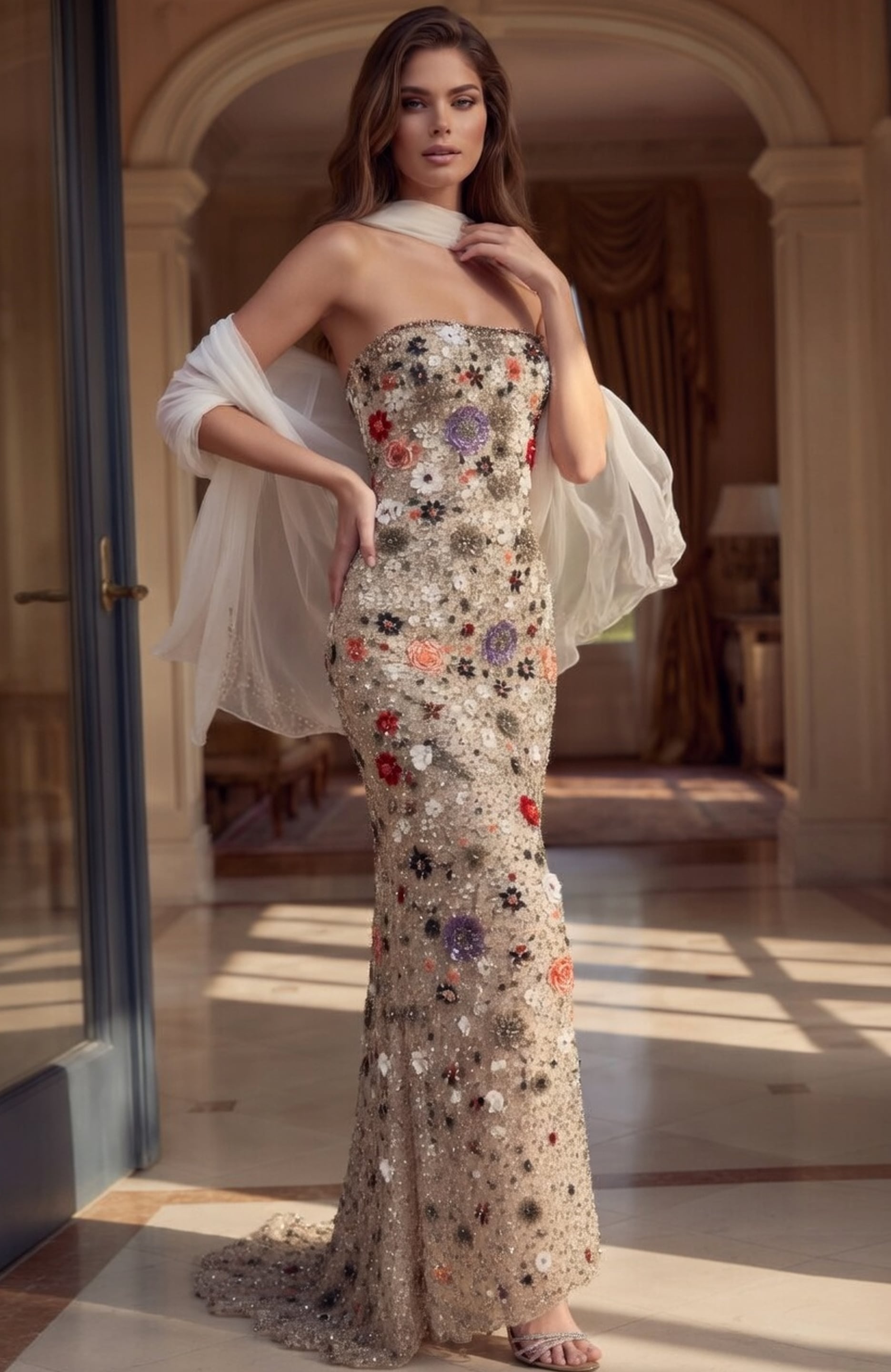 Strapless Floral Embroidered Sequin Mermaid Gown 48587