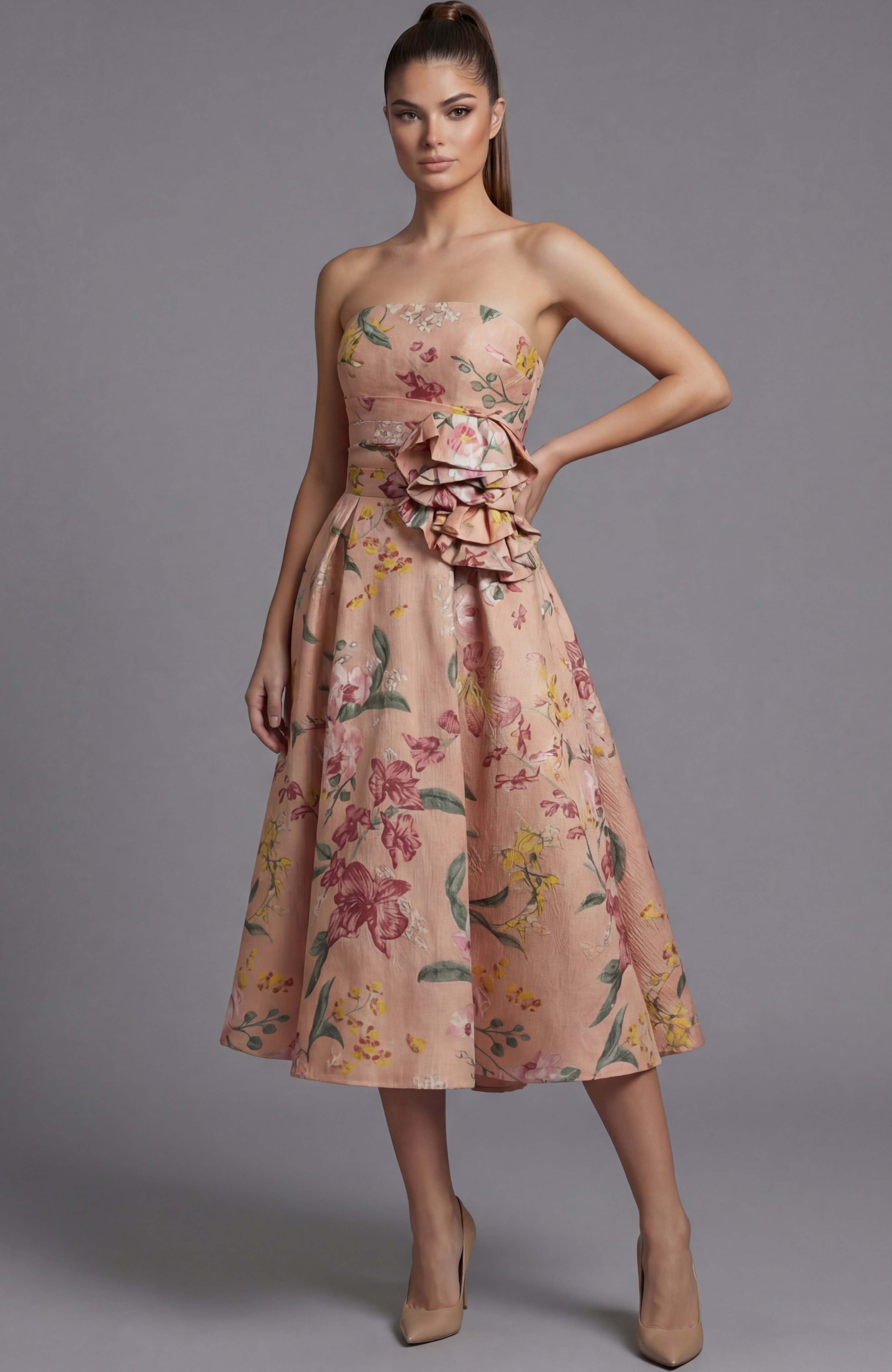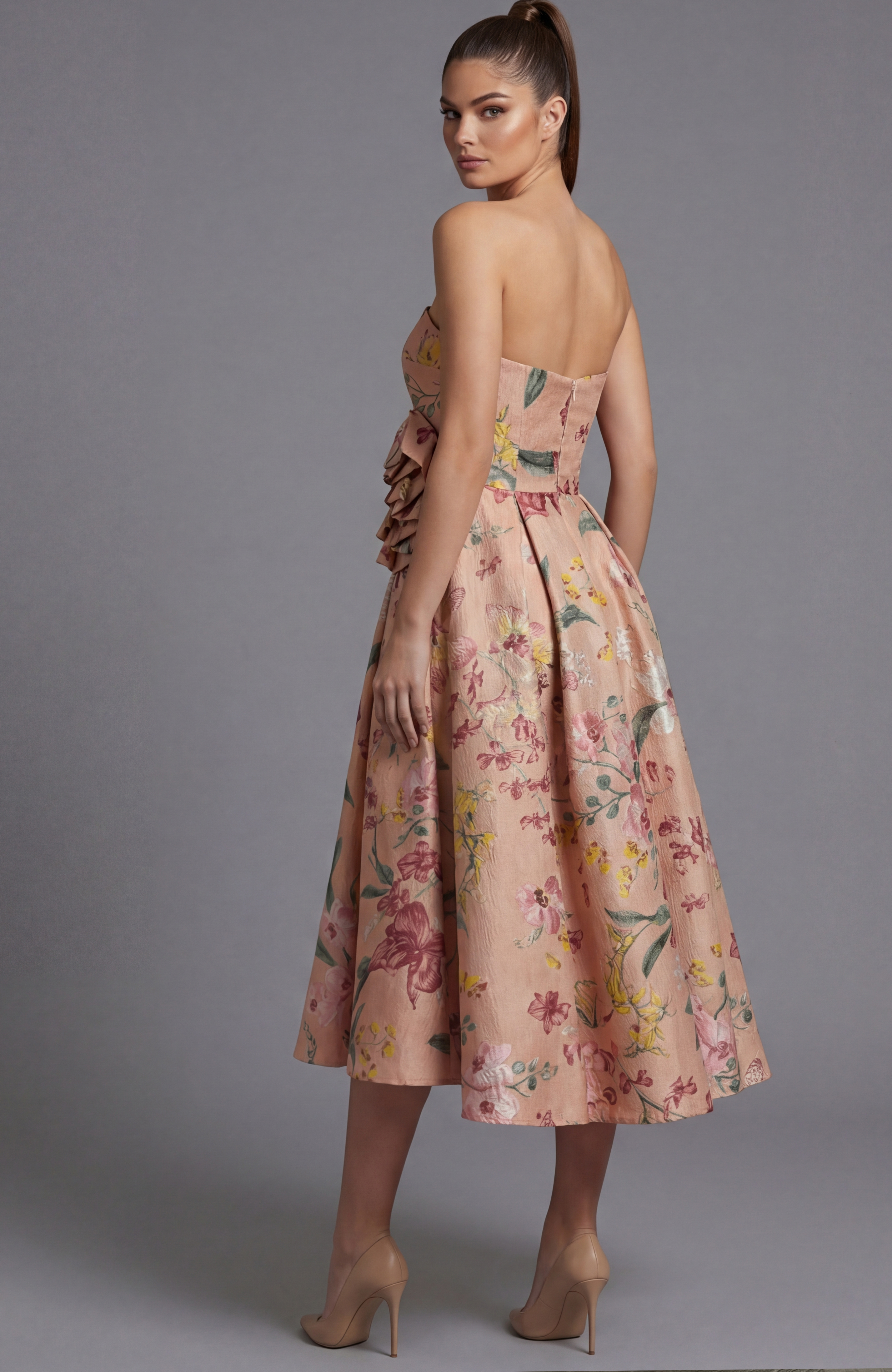 Strapless Brocade Corset Mini Dress With Full Skirt 51693