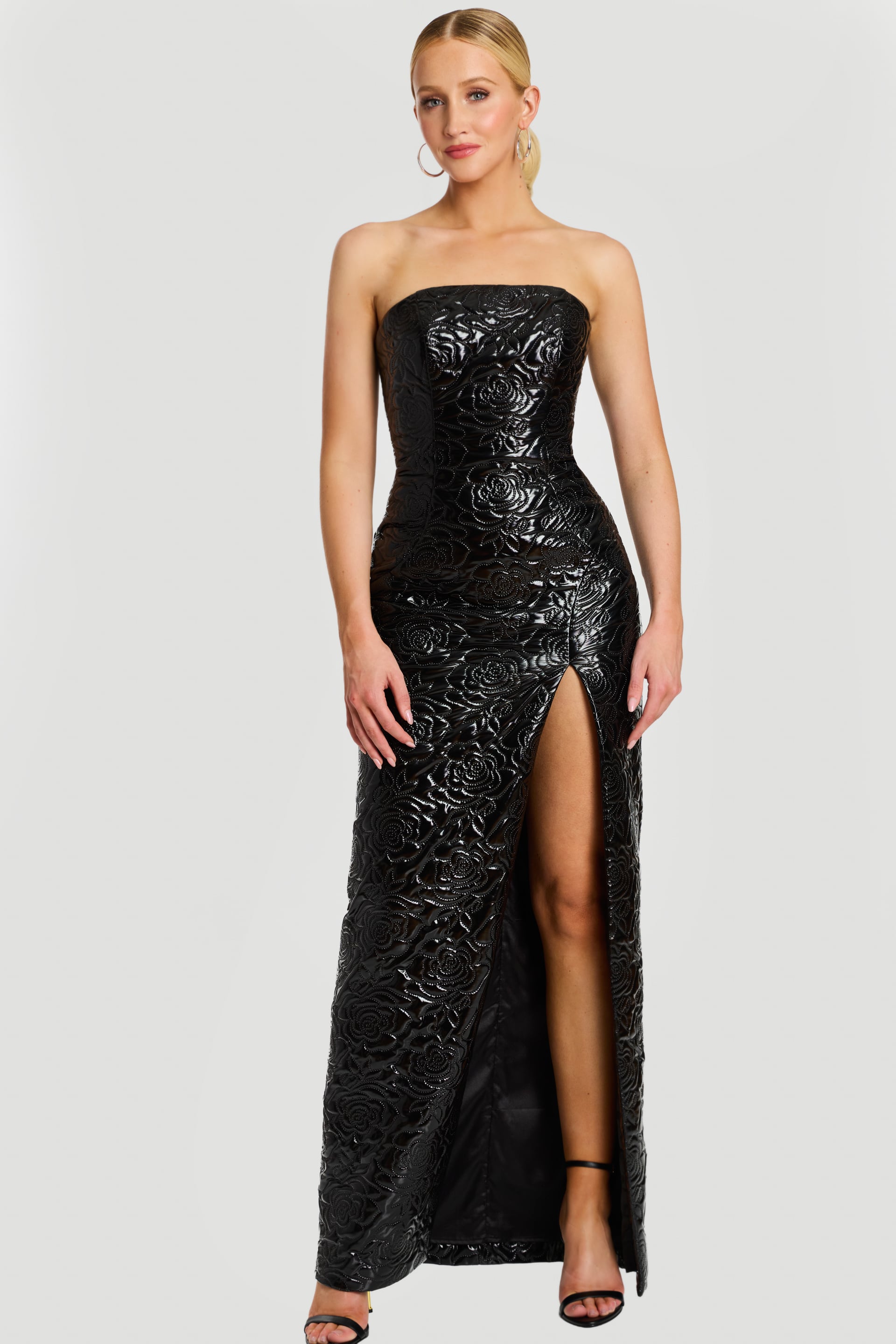 Strapless Gown with Glossy Floral Texture 46579
