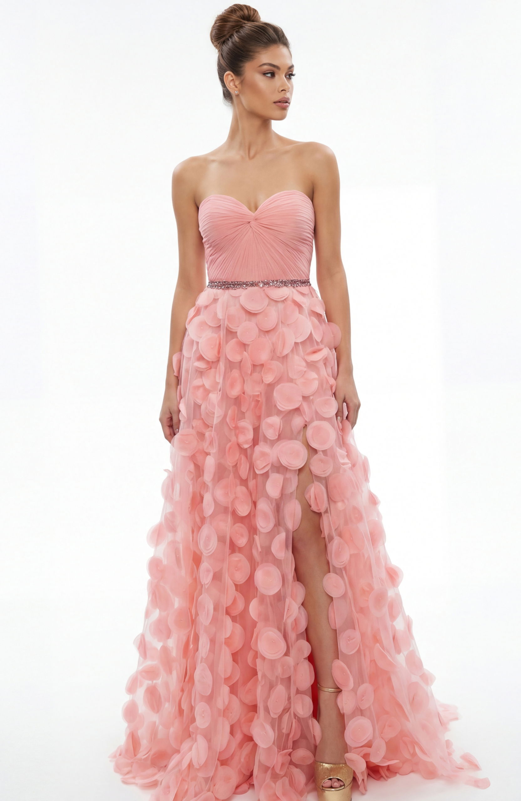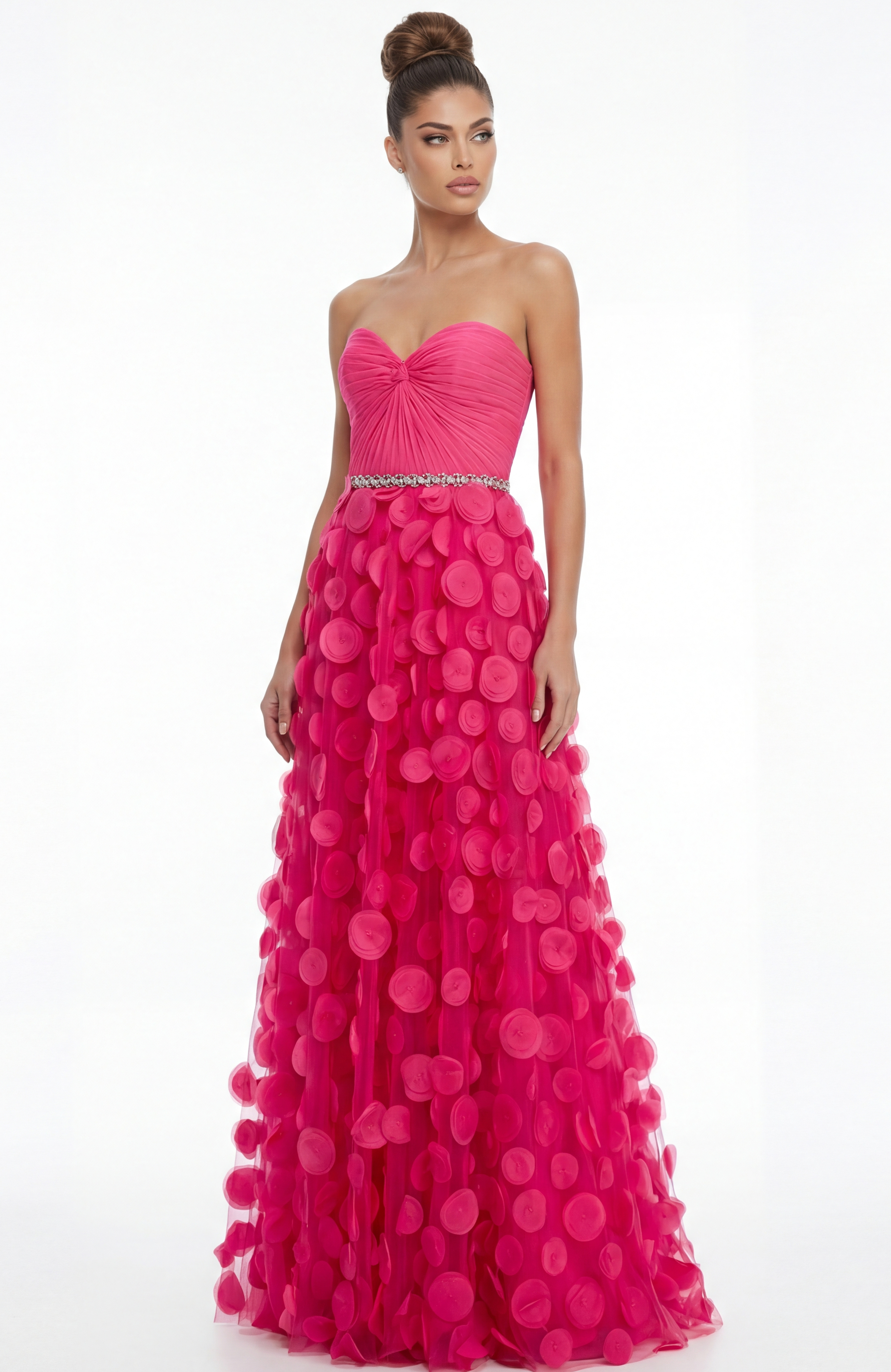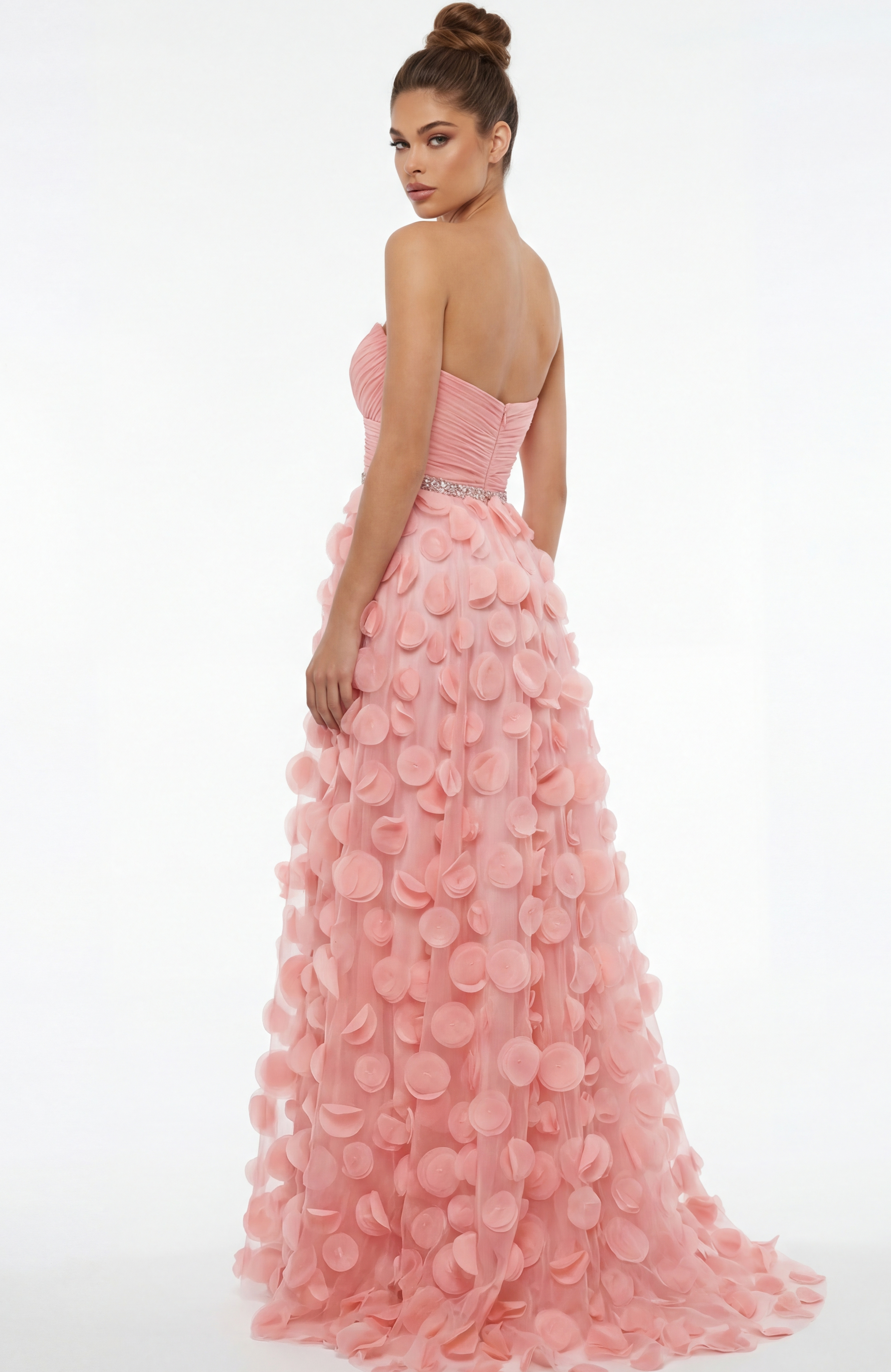 Strapless Gown With Textured Floral Appliqué Skirt 49346