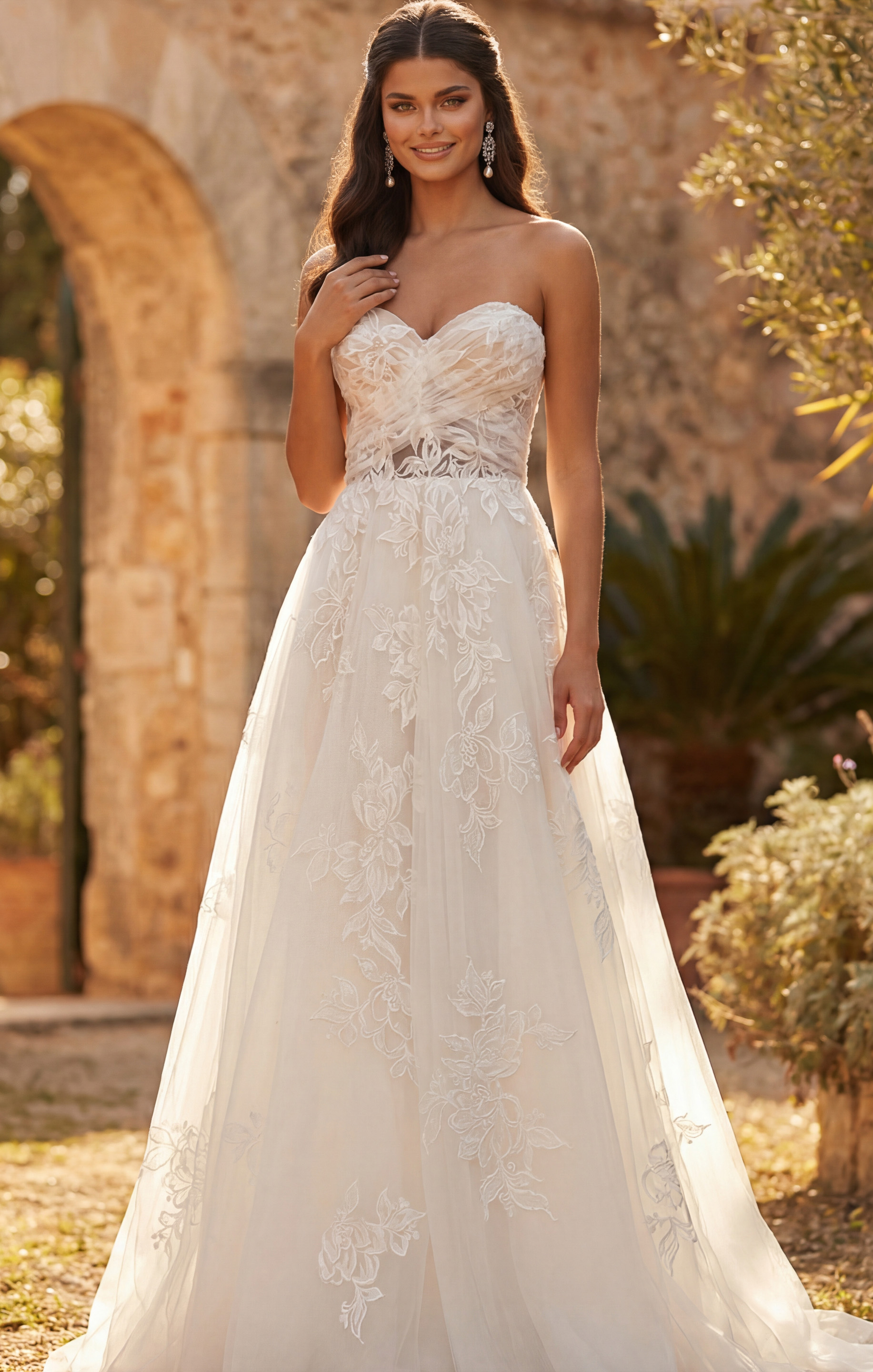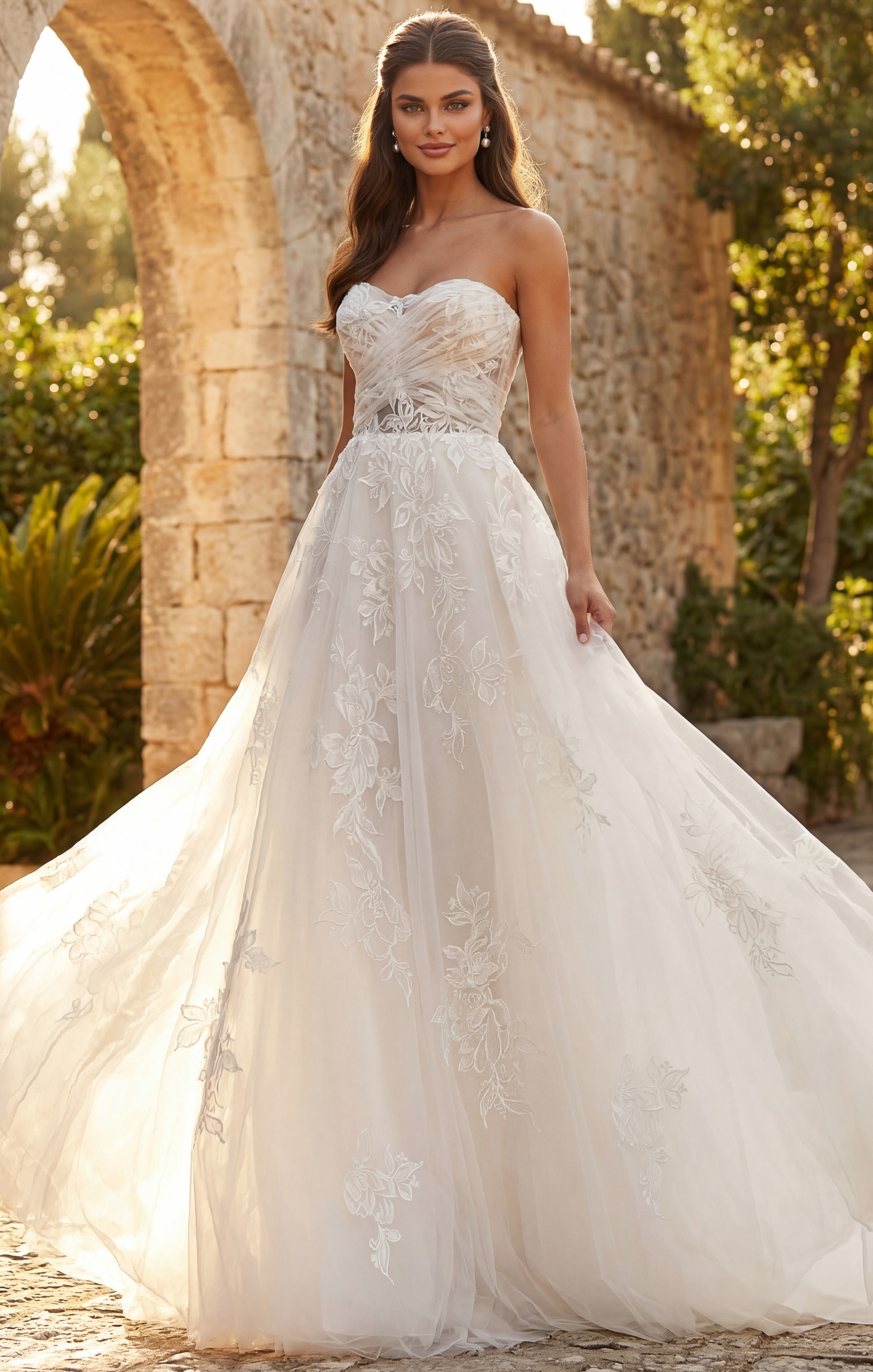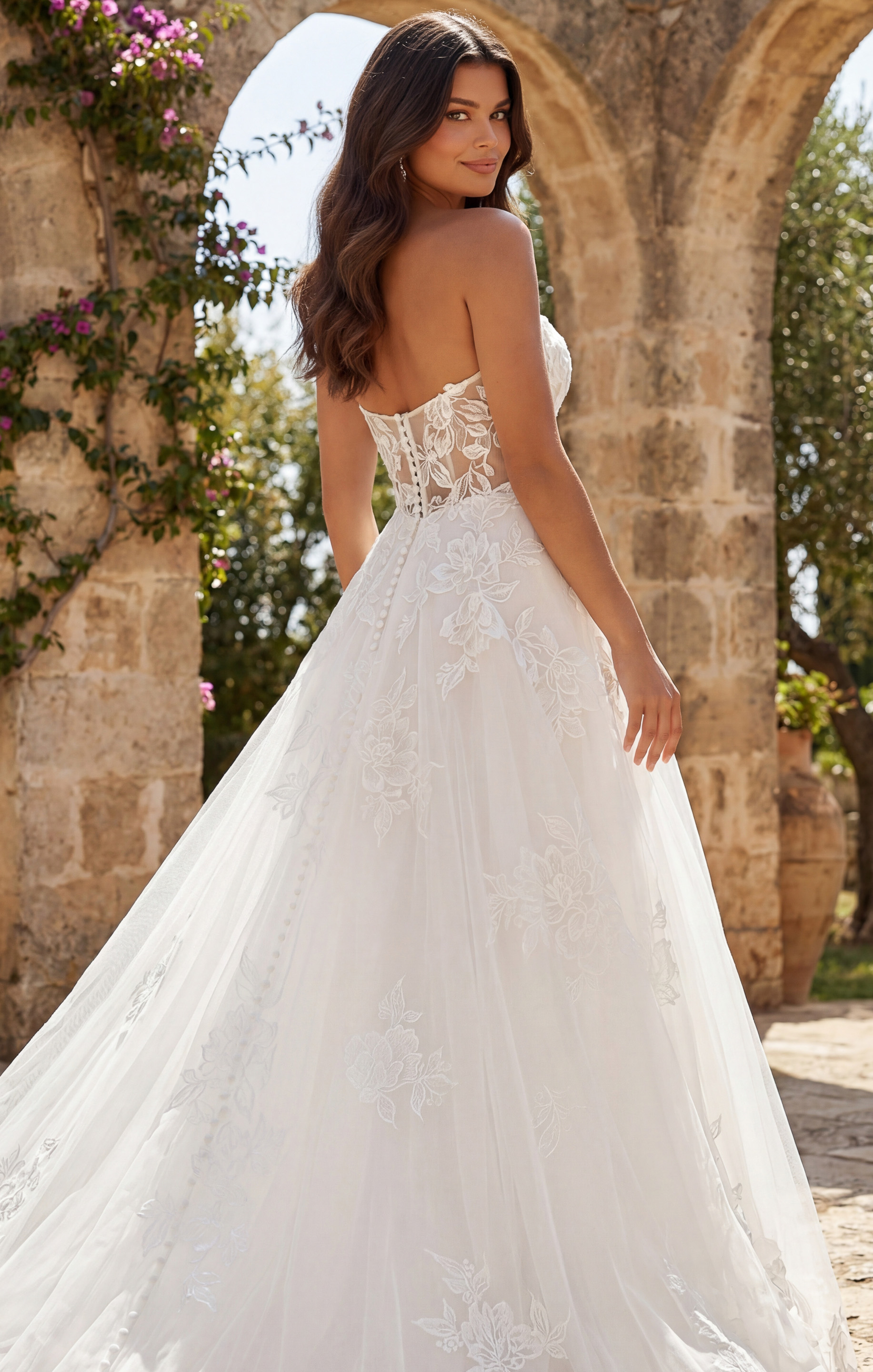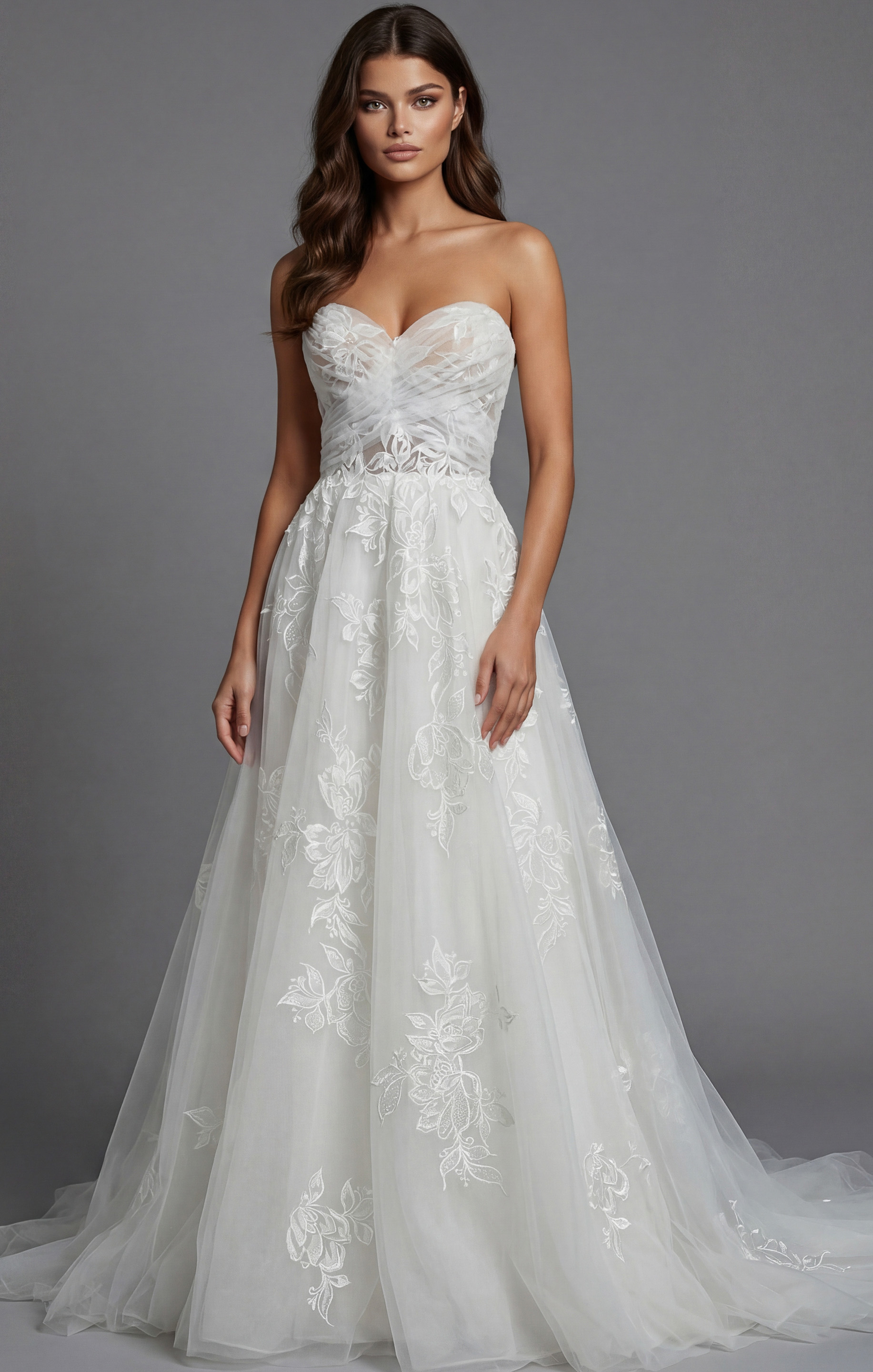 Strapless Lace Ball Gown with Embroidered Tulle Skirt JB43191