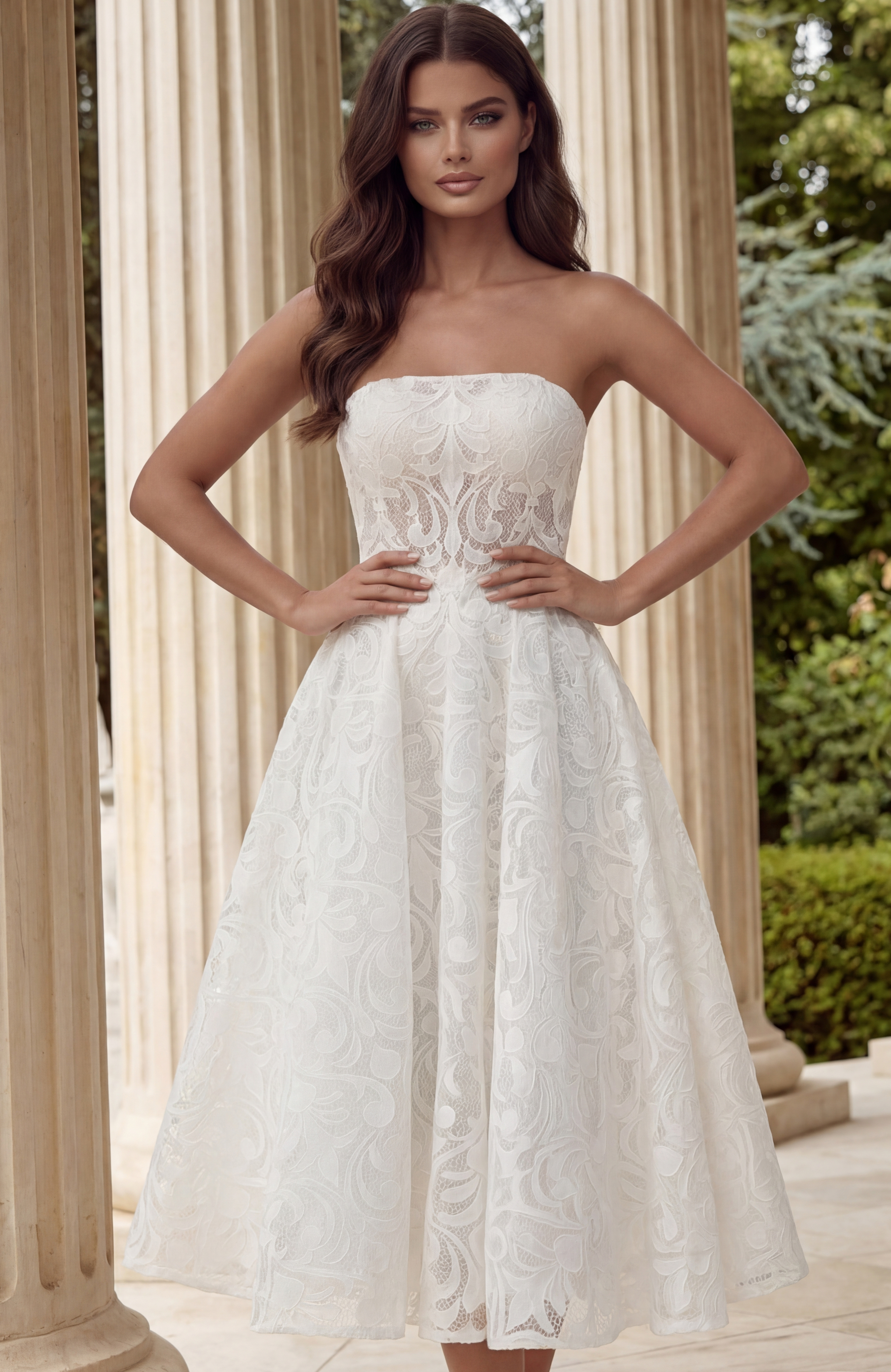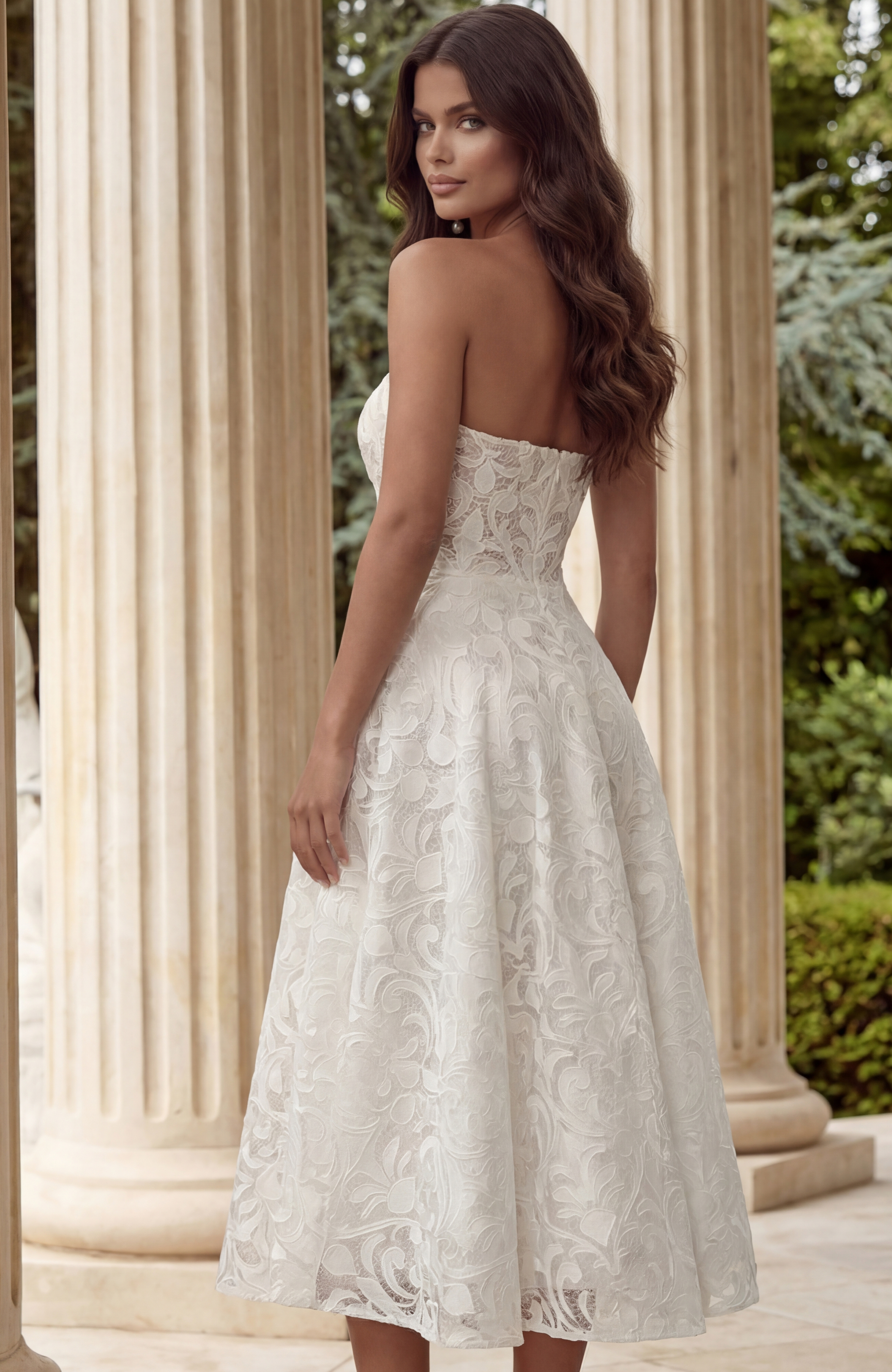 Strapless Lace Midi Dress With Flared Skirt JB48460