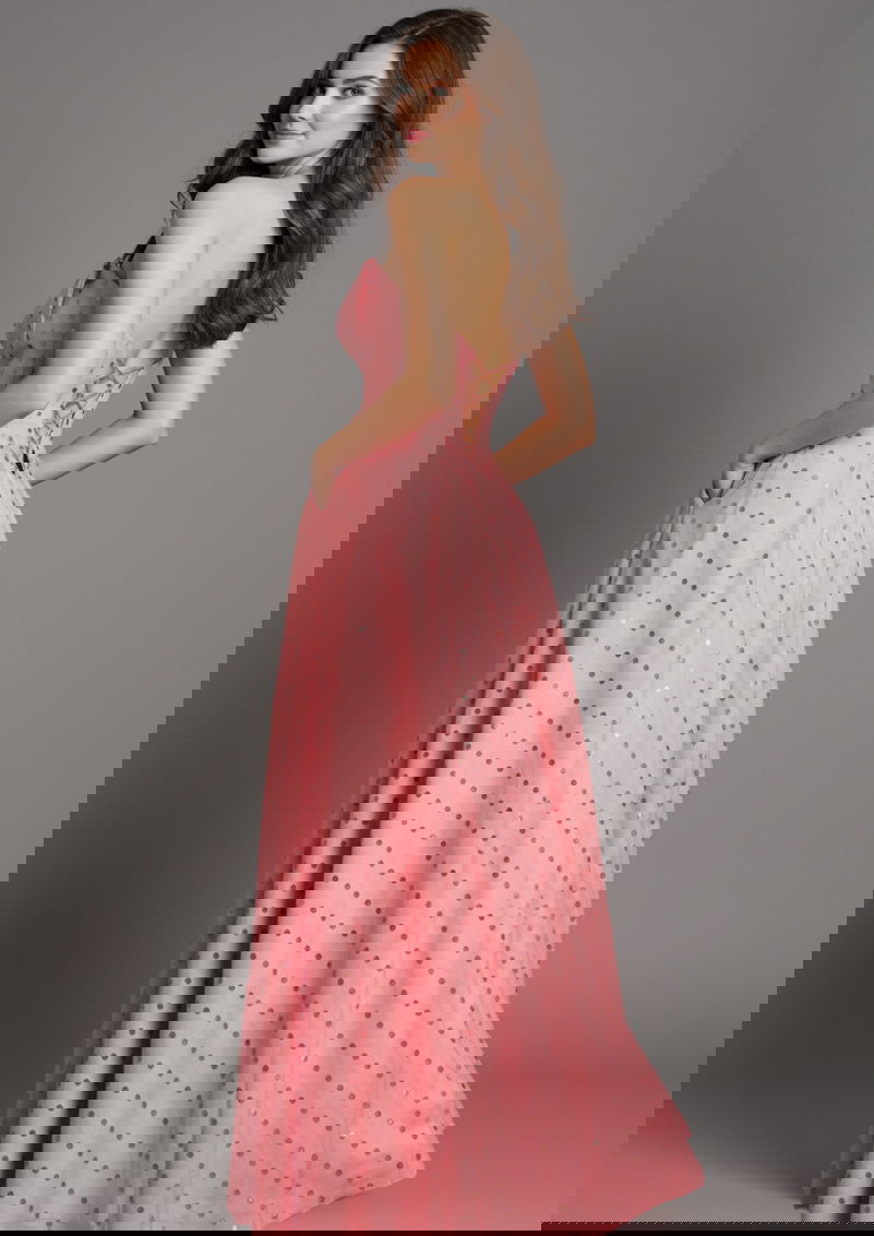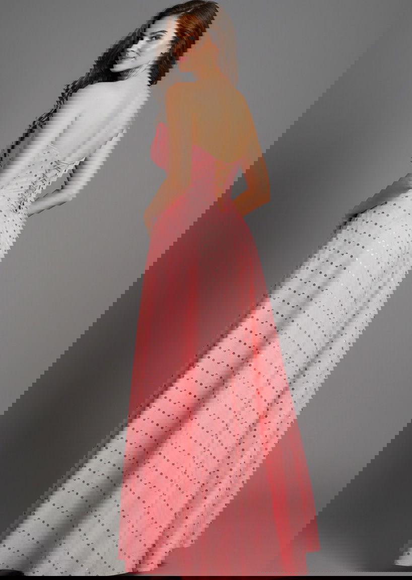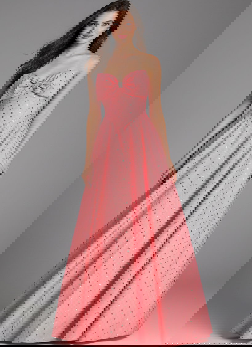 Crystal Embellishments, Front Bow Detail, Structured Bodice, Floor-Length Skirt with Pockets