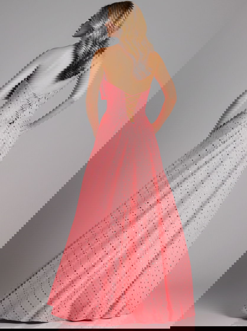 Strapless Polka Dot Ball Gown with Bow Detail 49340