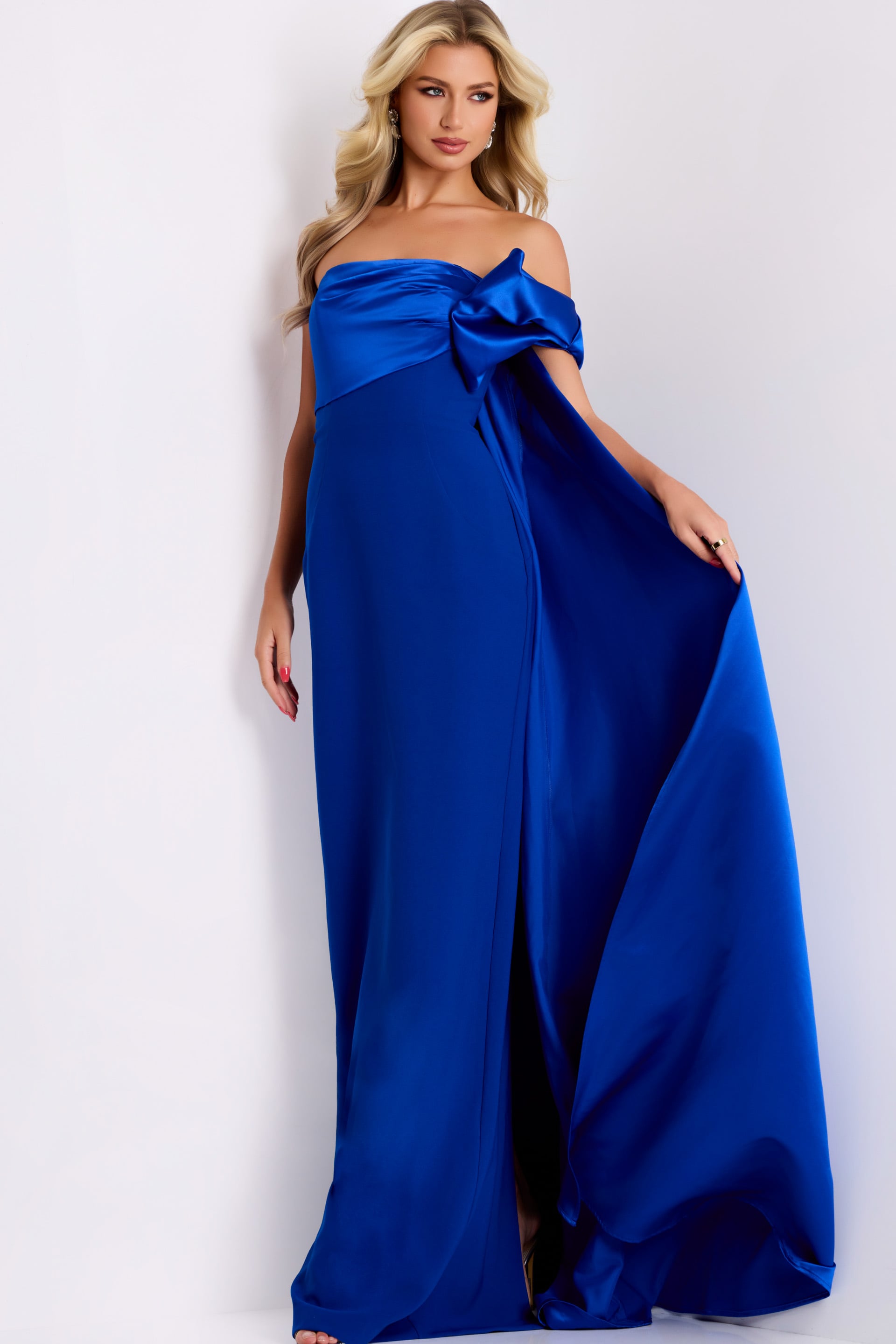 Bow Shoulder Short Sleeve Evening Gown 48945