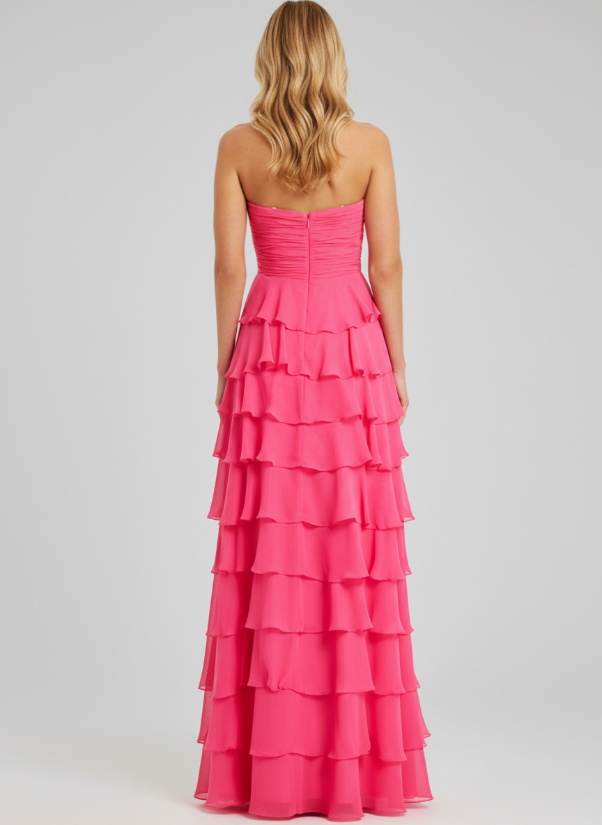 Strapless Ruffle Tiered Gown with Cutout Bodice 47898