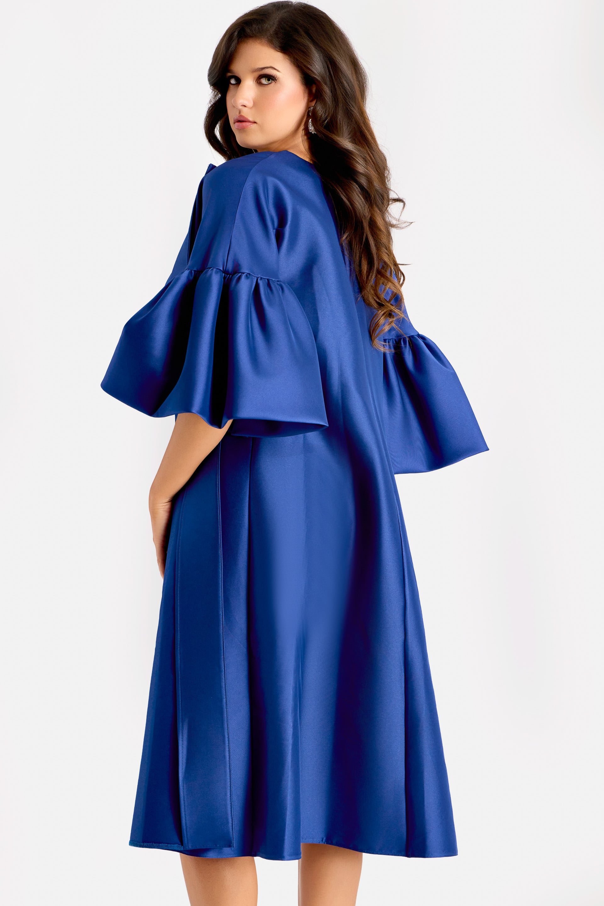 Elegant Long Sleeve V Neck Midi Dress With Sculpted Waist 51637