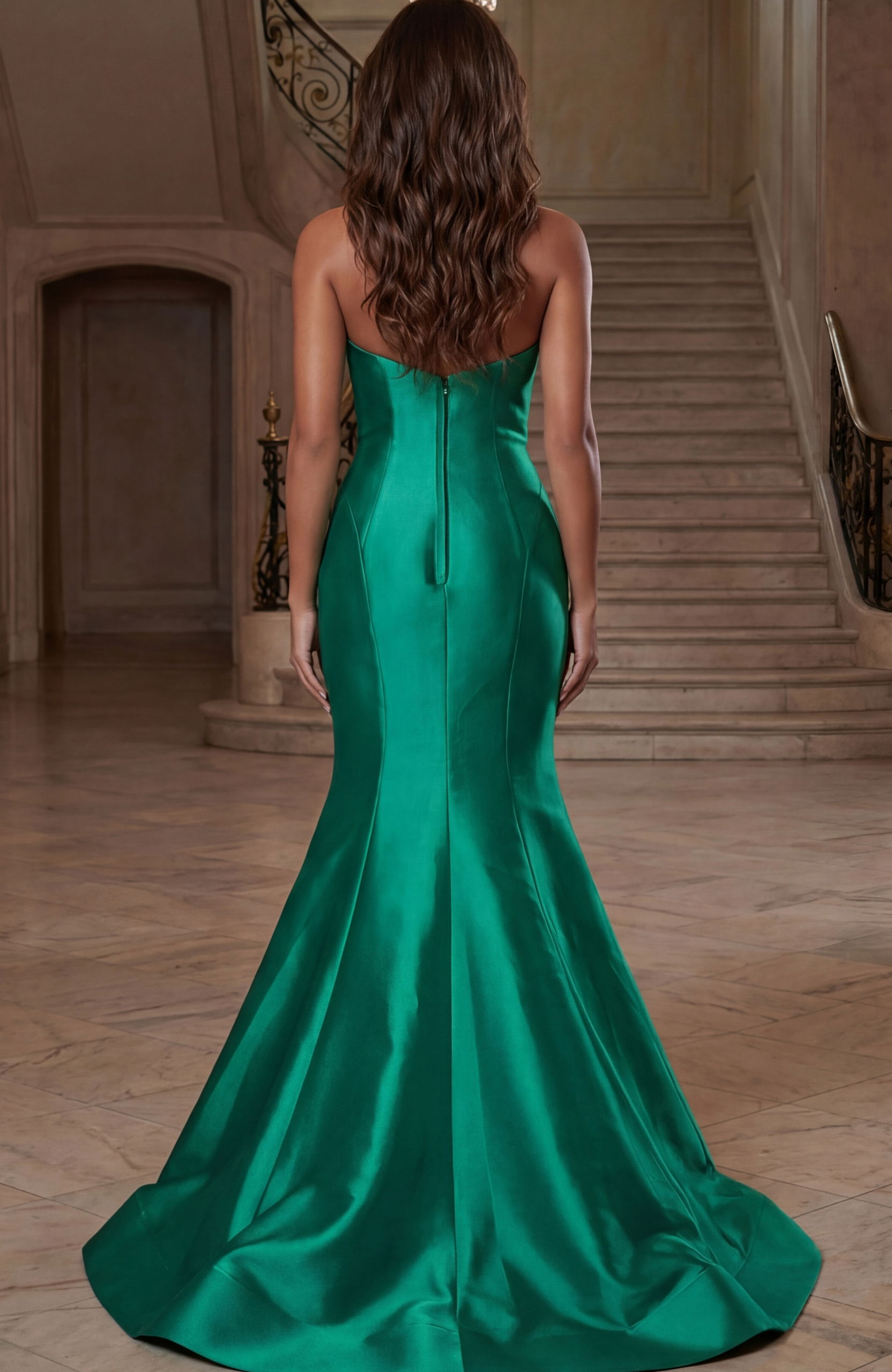 Strapless Satin Trumpet Gown With Draped Bodice 49492