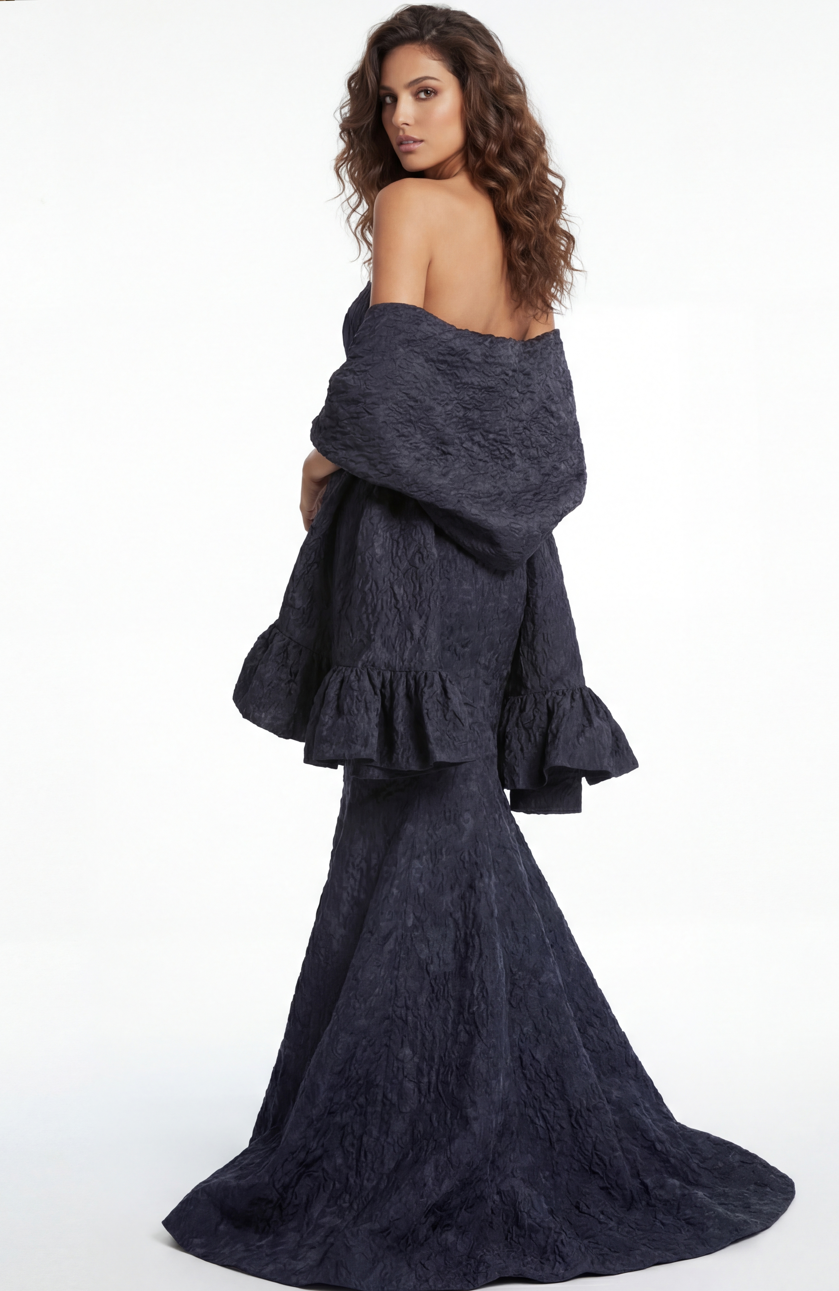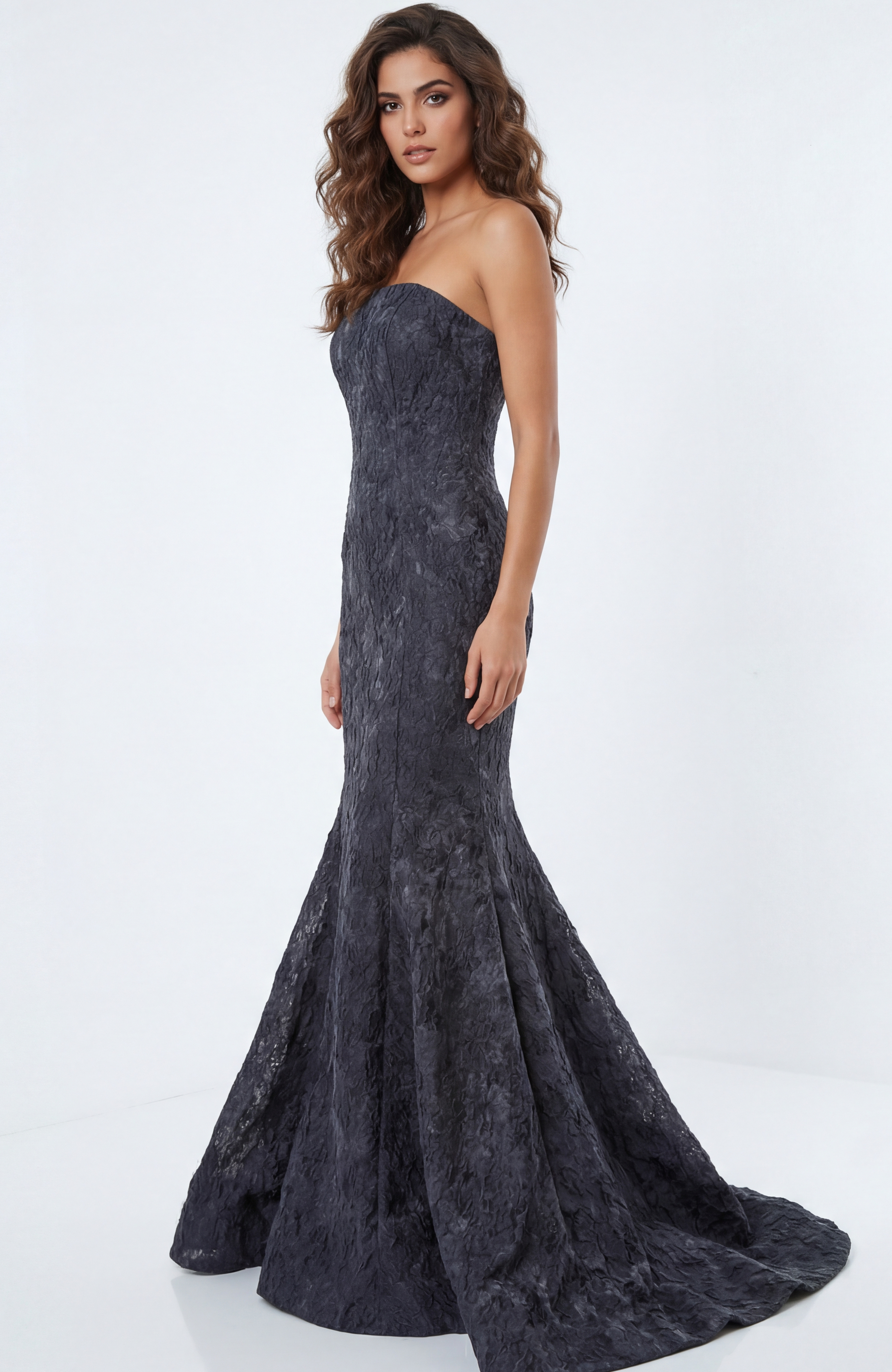 One Shoulder Beaded Tulle Evening Gown 49732