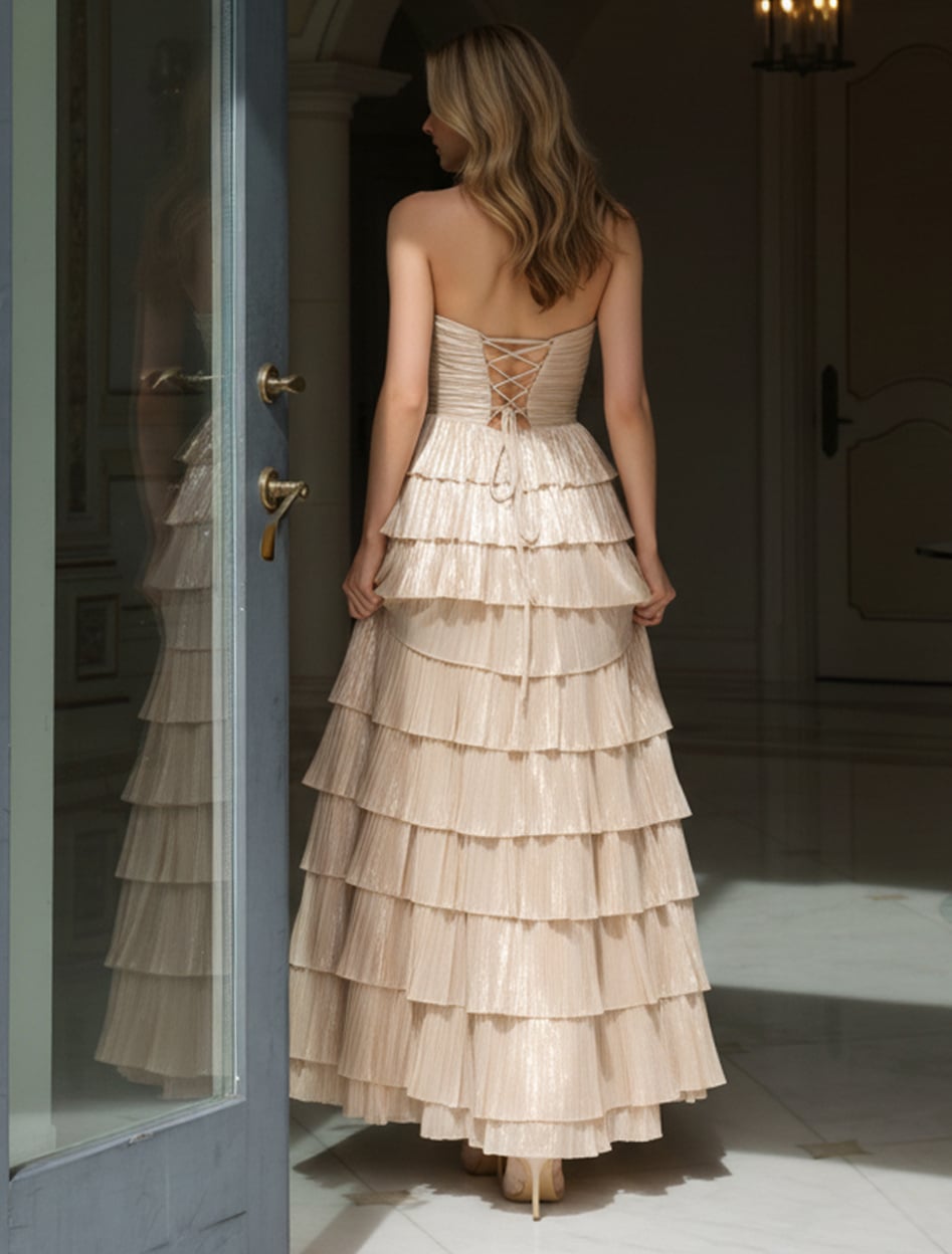 Strapless Tiered Evening Gown With Side Slit 43161