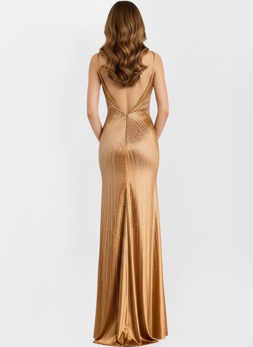 Beaded Lines, High Slit, Draped Effect, Shimmer Finish