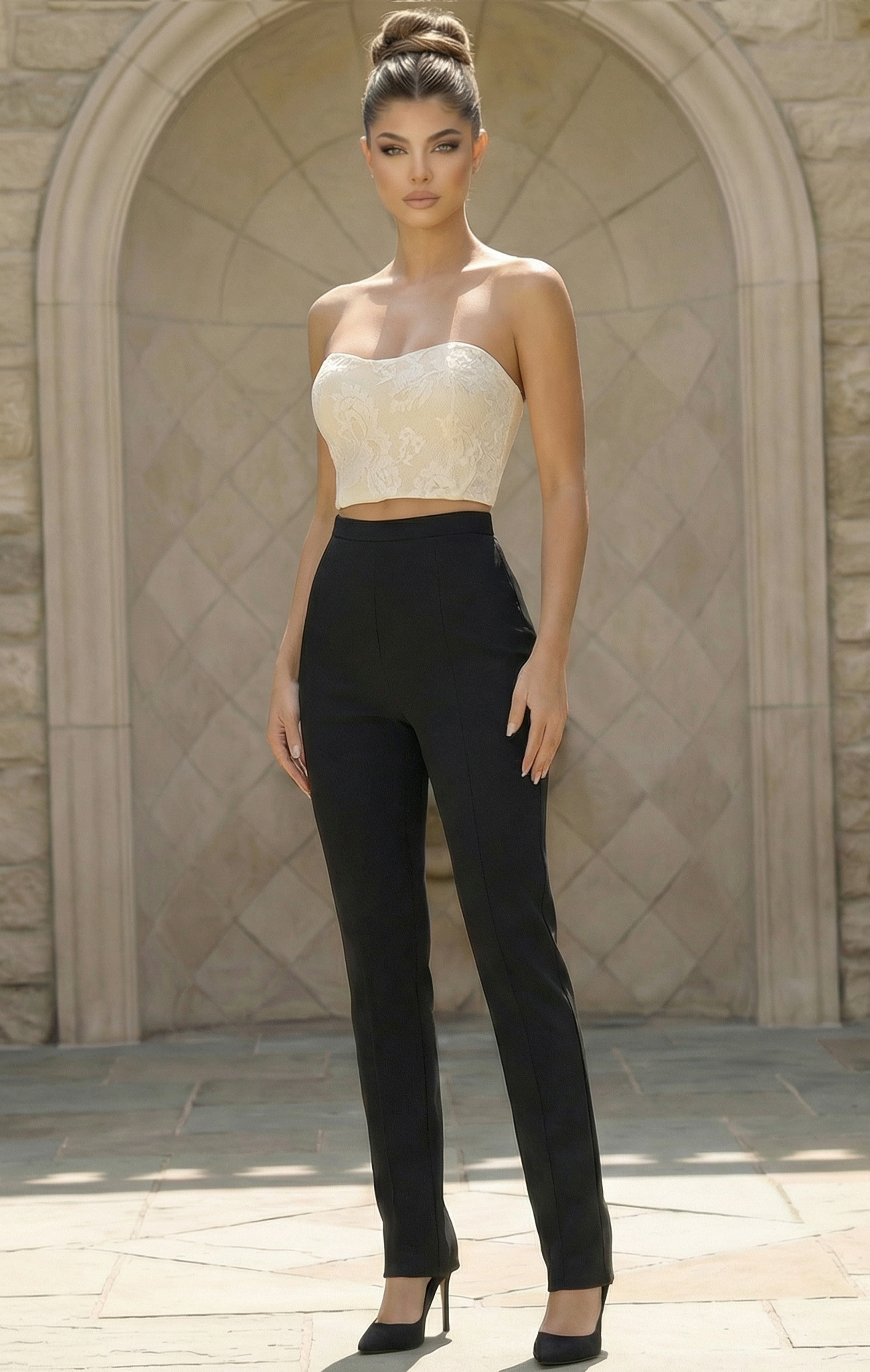 Elegant V Neck Tailored Jumpsuit With Puff Sleeves 49372