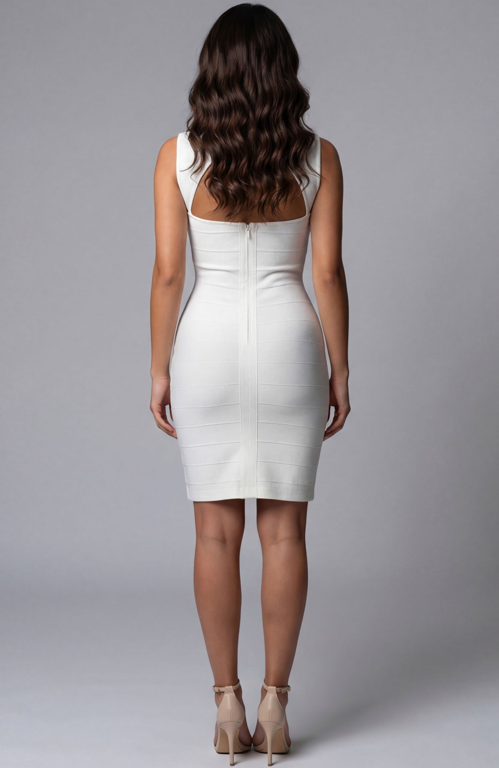 Exposed zipper, open back cut