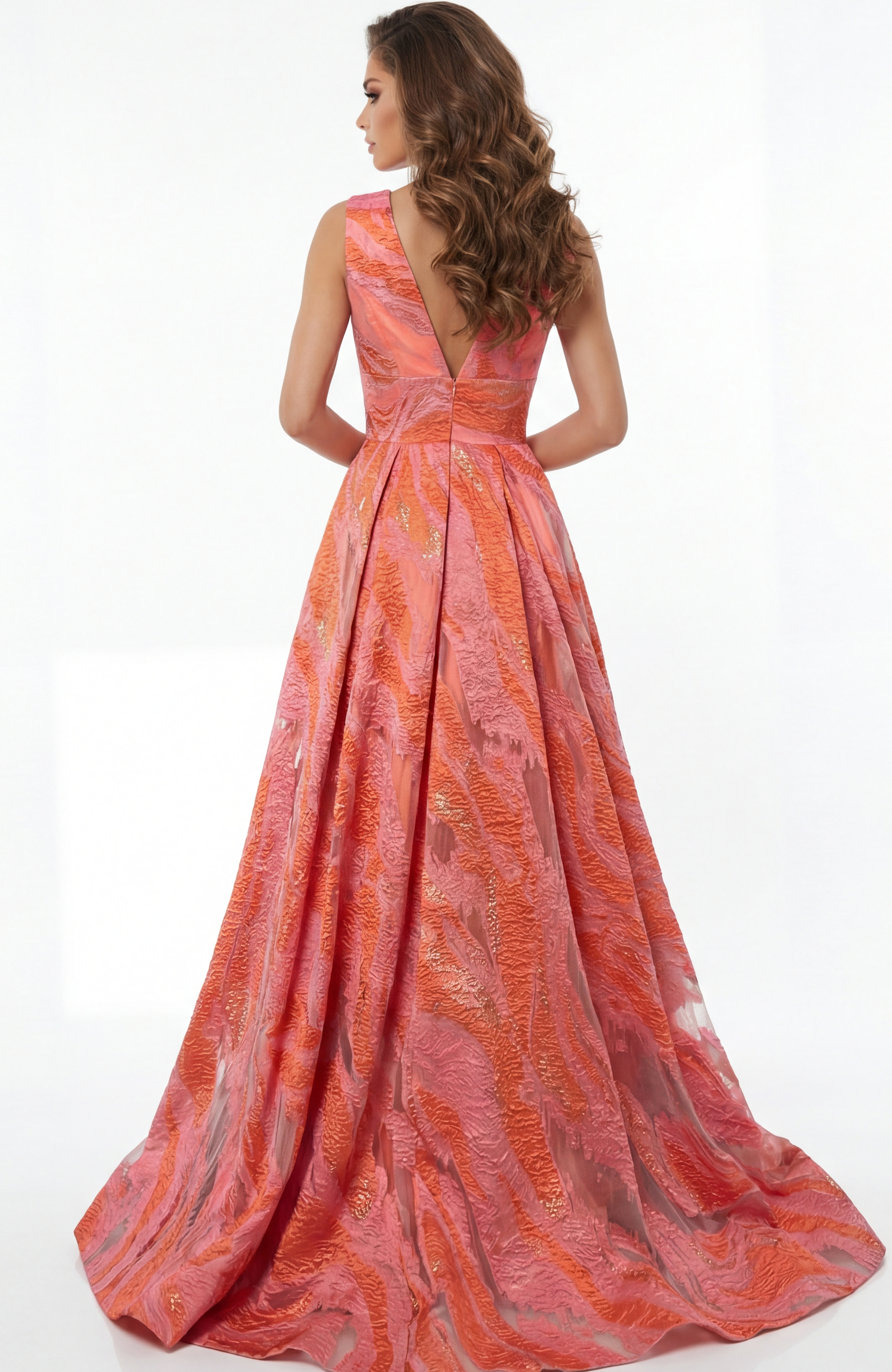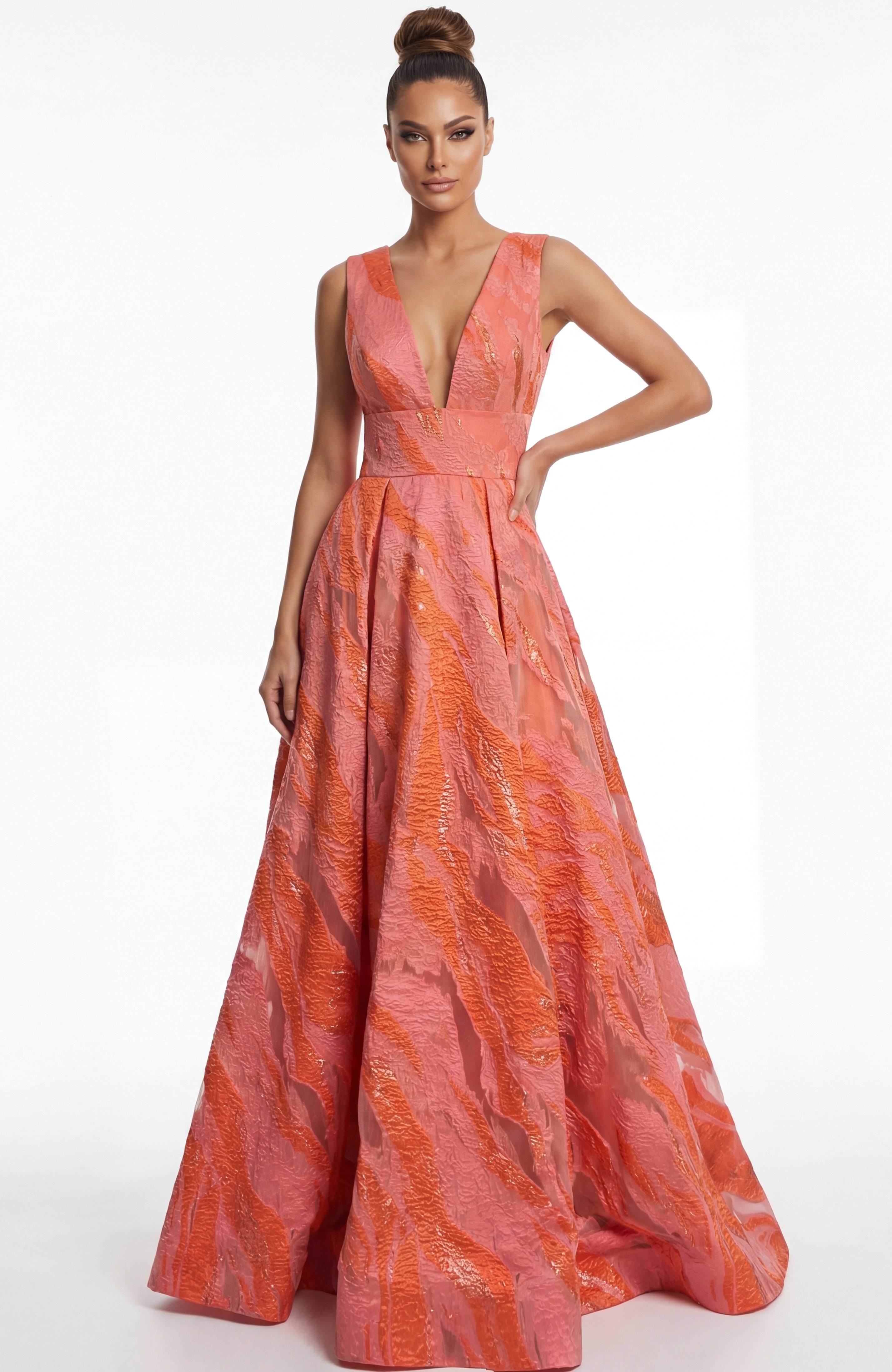Sleeveless Ruffle Detail Fitted Evening Gown 48193