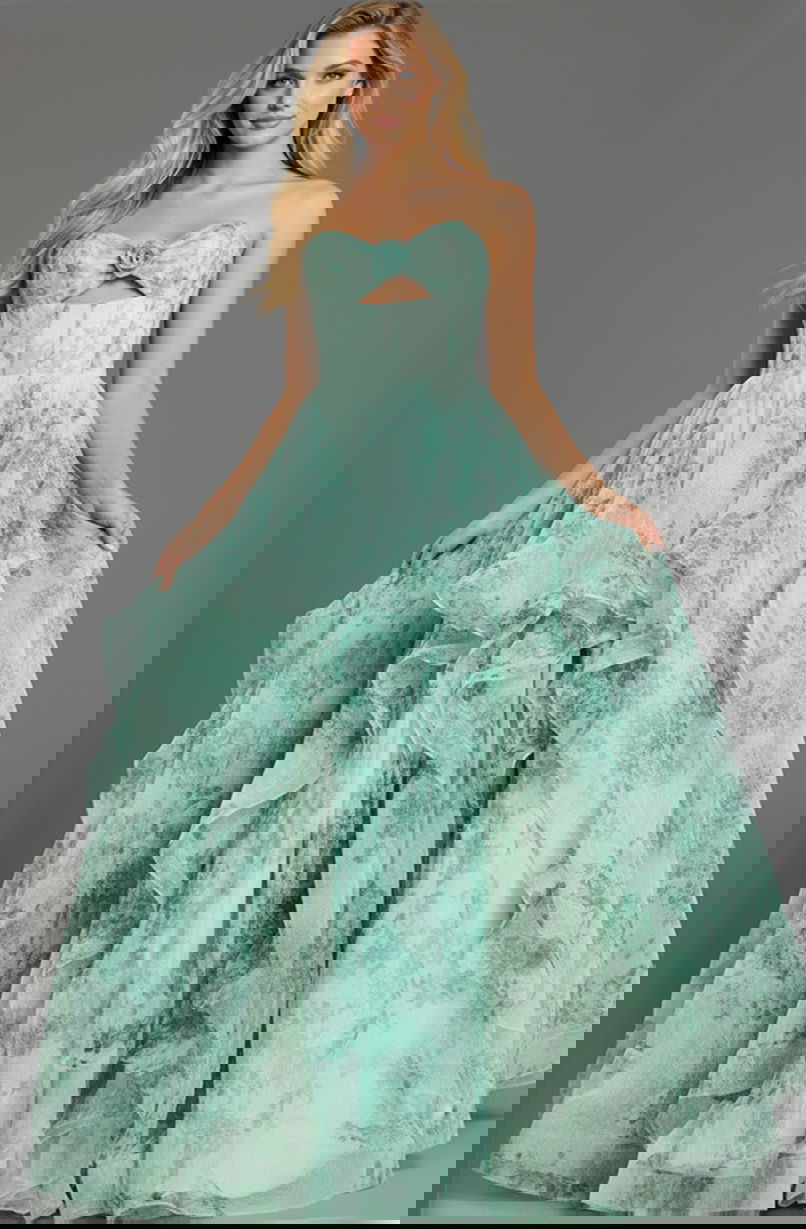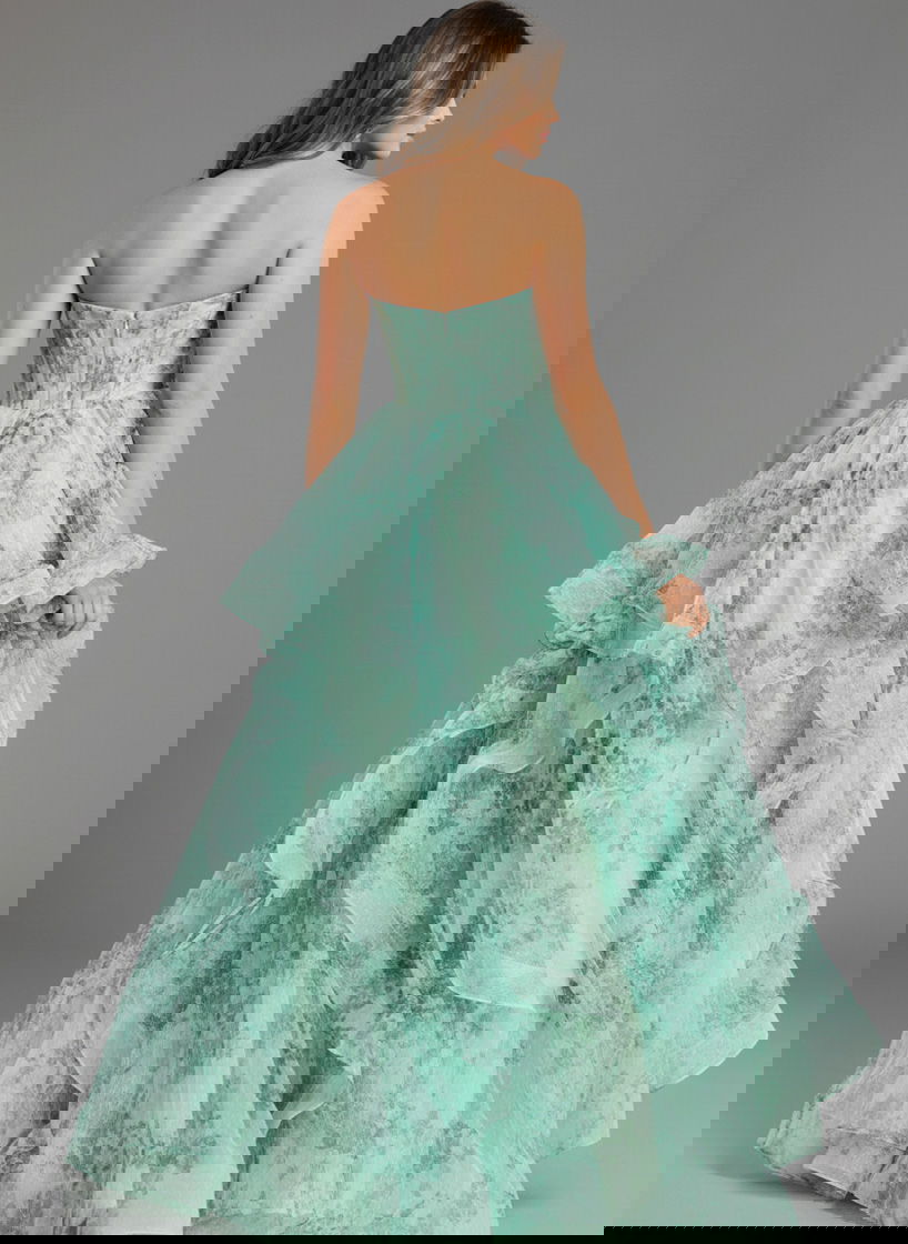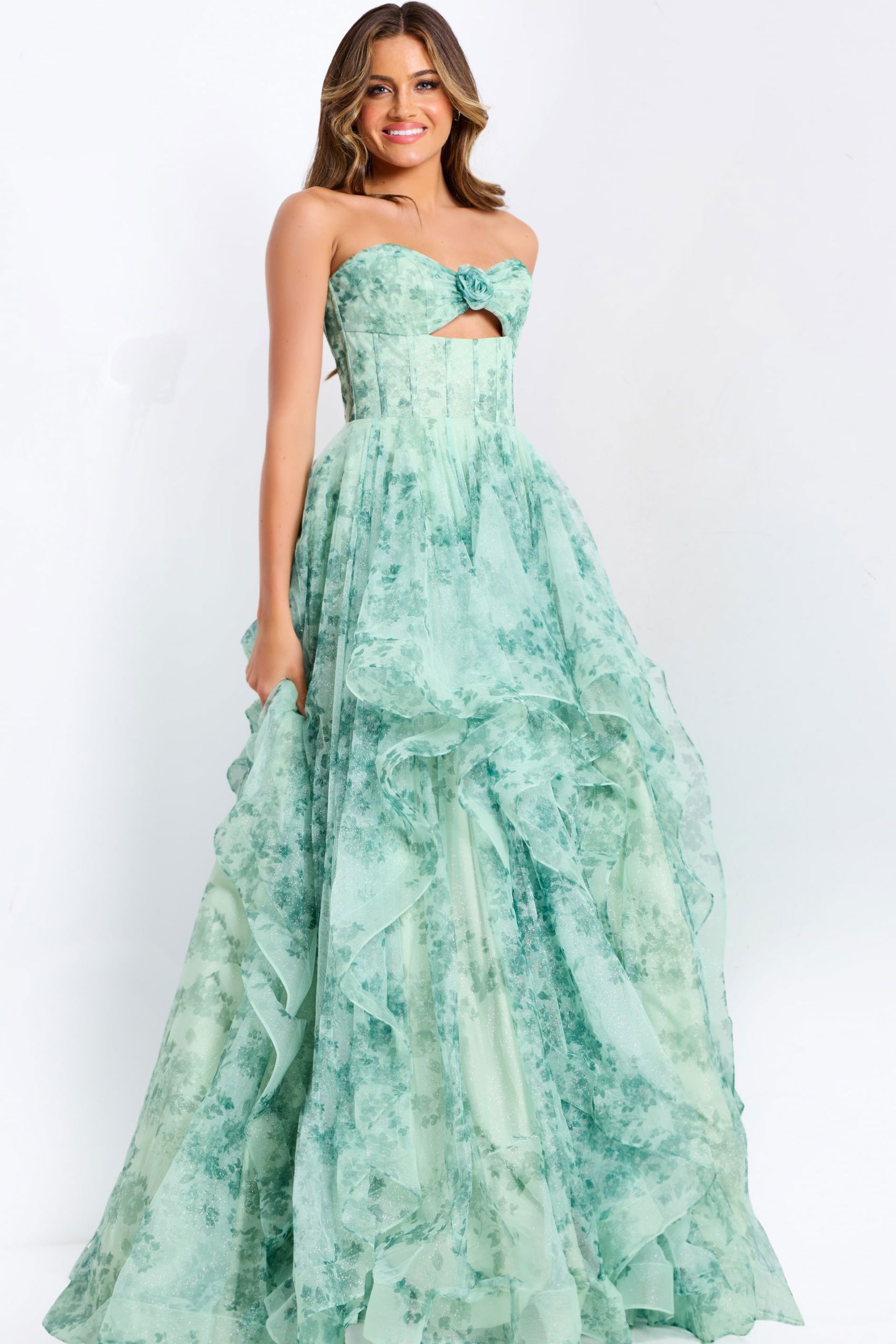 Tiered Floral Gown With Sweetheart Cutout 49777