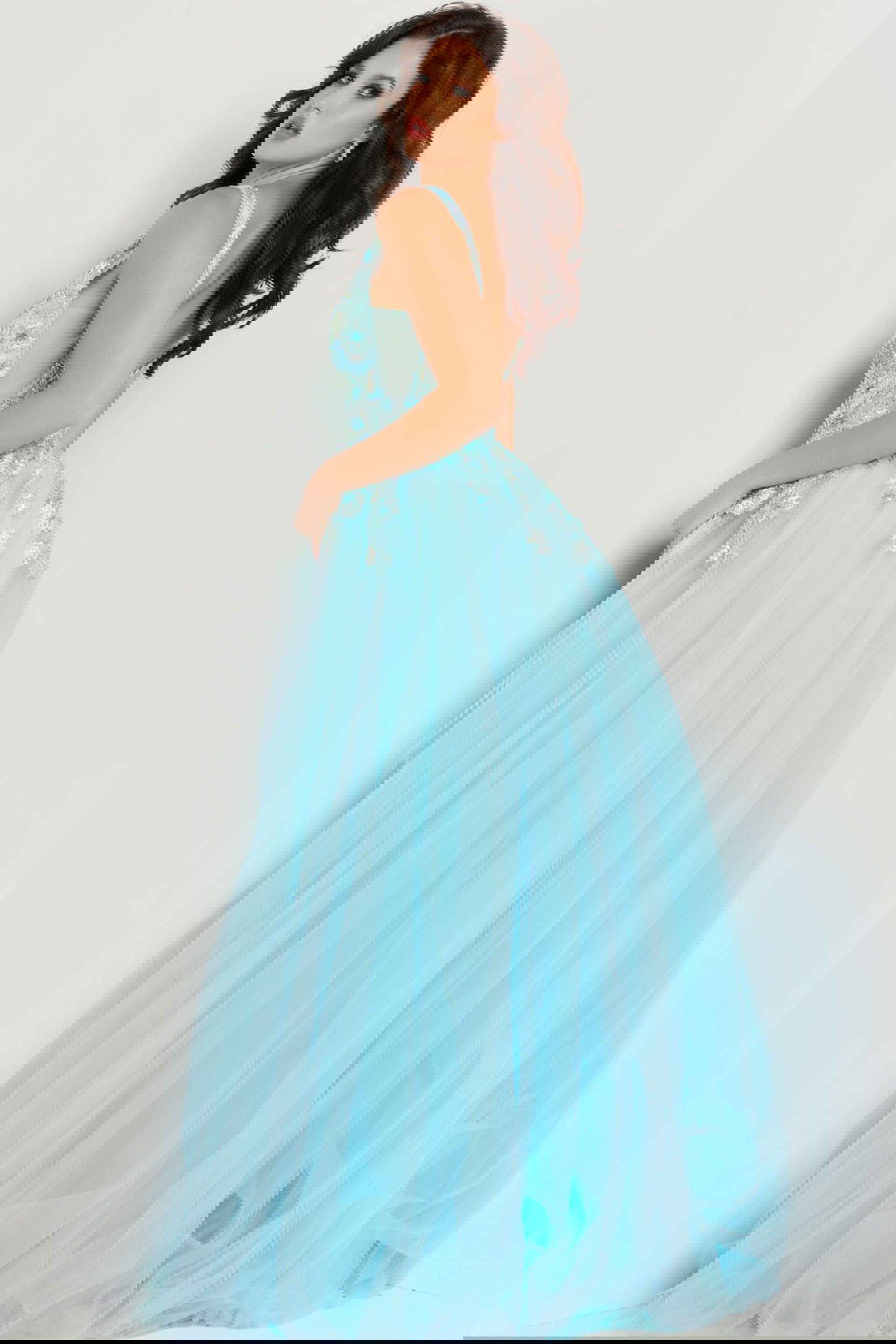 Sleeveless and available in a captivating turquoise hue, this dress allows for ease of movement, perfect for dancing the night away at prom or any special event.