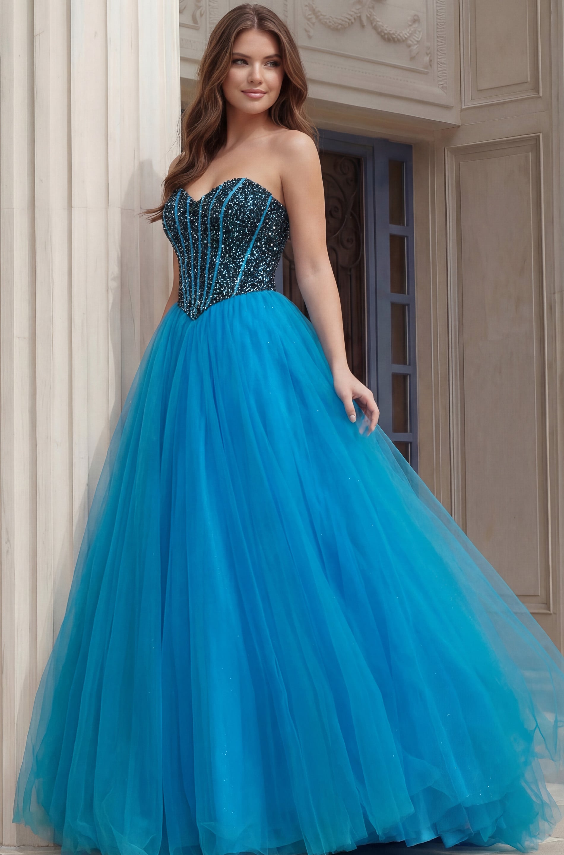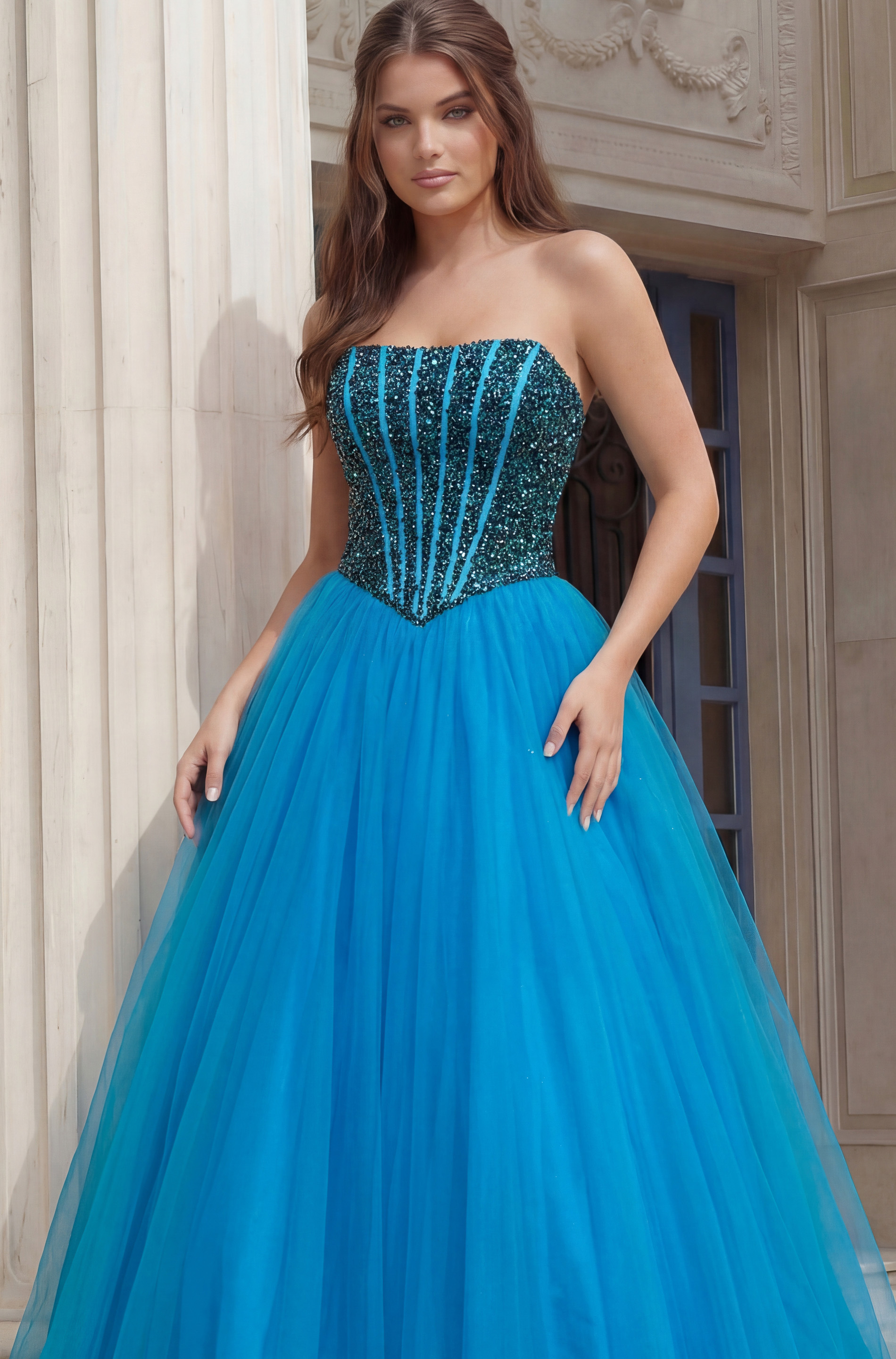 Strapless Beaded Corset Tulle Ball Gown 45539
