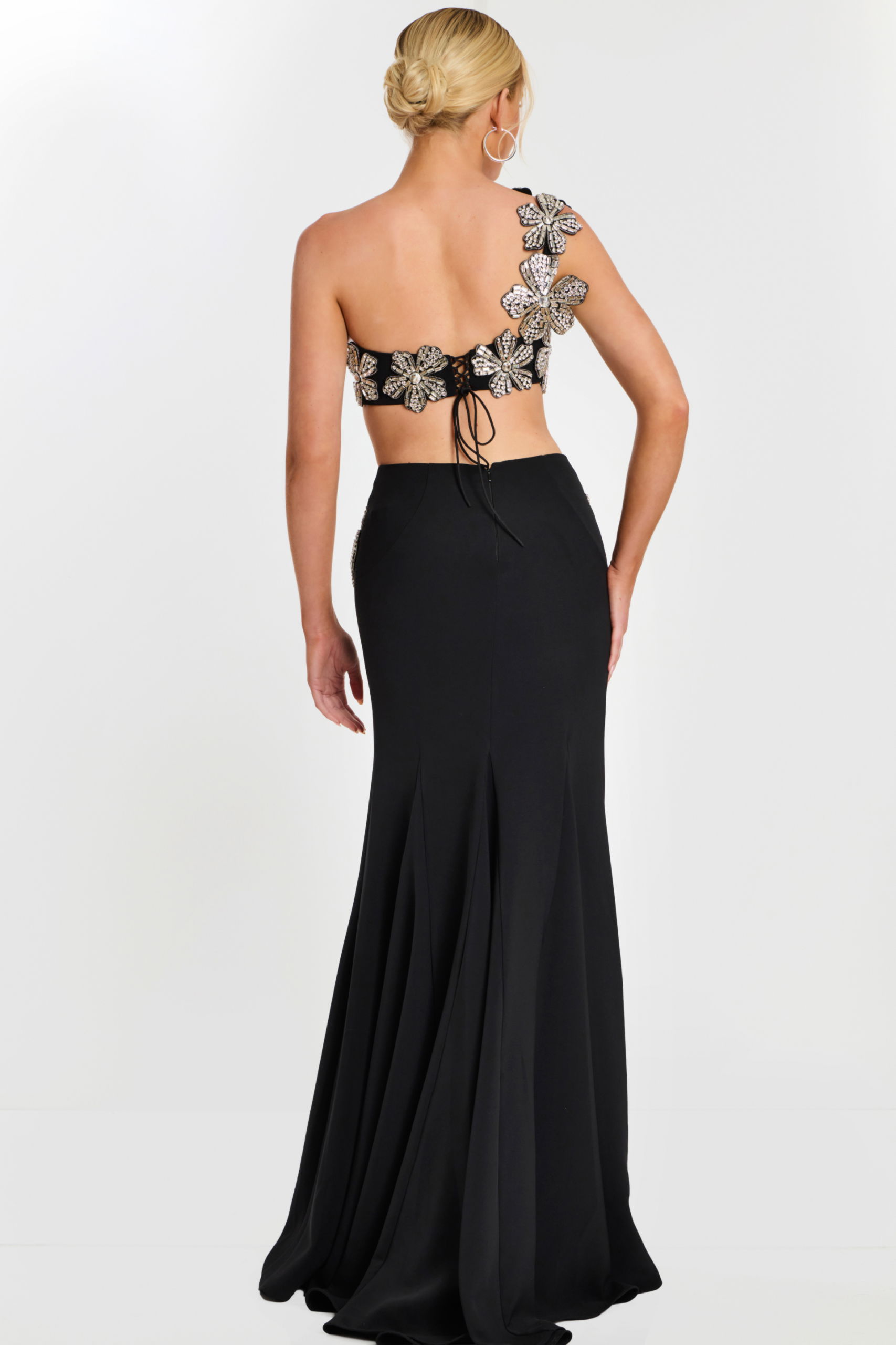 Crystal Floral Appliqués, High Slit, Beaded Trim