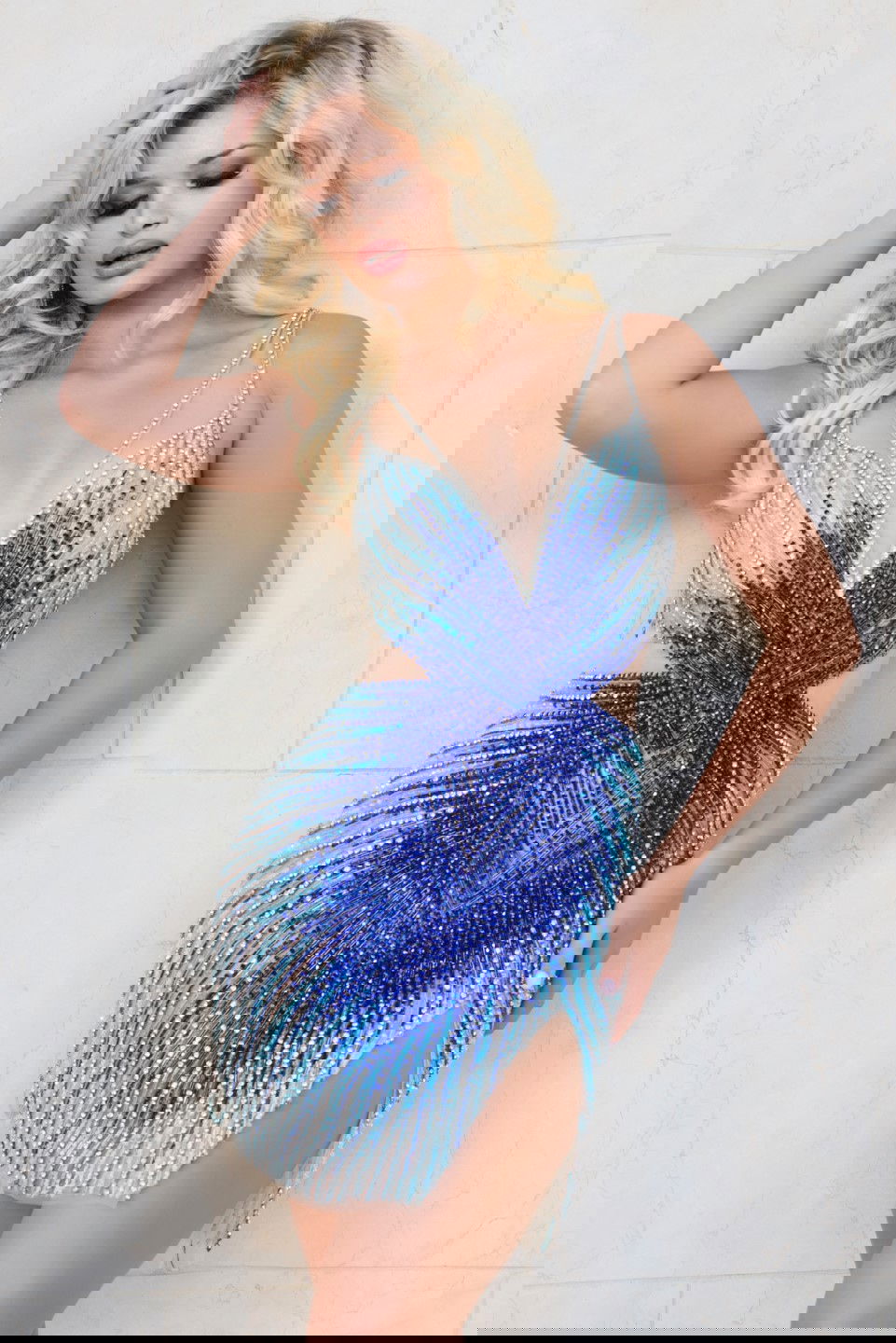 Turn heads in this stunning mini dress, flaunting a captivating V-neckline and delicate spaghetti straps. This sheath silhouette showcases intricate beadwork arranged in an eye-catching pattern that cascades into glamorous fringe detailing. The open back adds a touch of allure, making it perfect for a night out. The dress is designed to hug your curves and sparkle with every step, ensuring you stand out in any crowd.