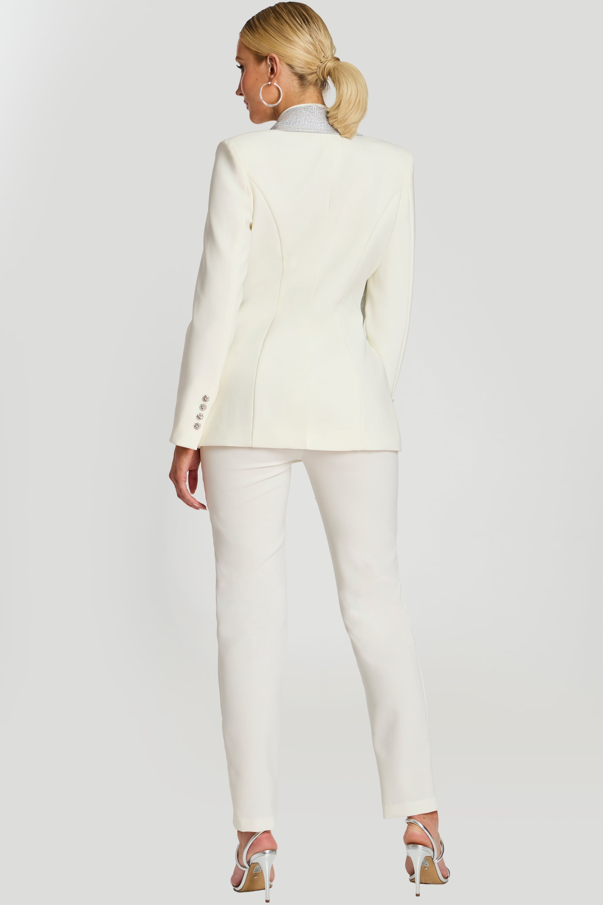 White Pantsuit With Crystal Tie and Rhinestone Buttons 46267