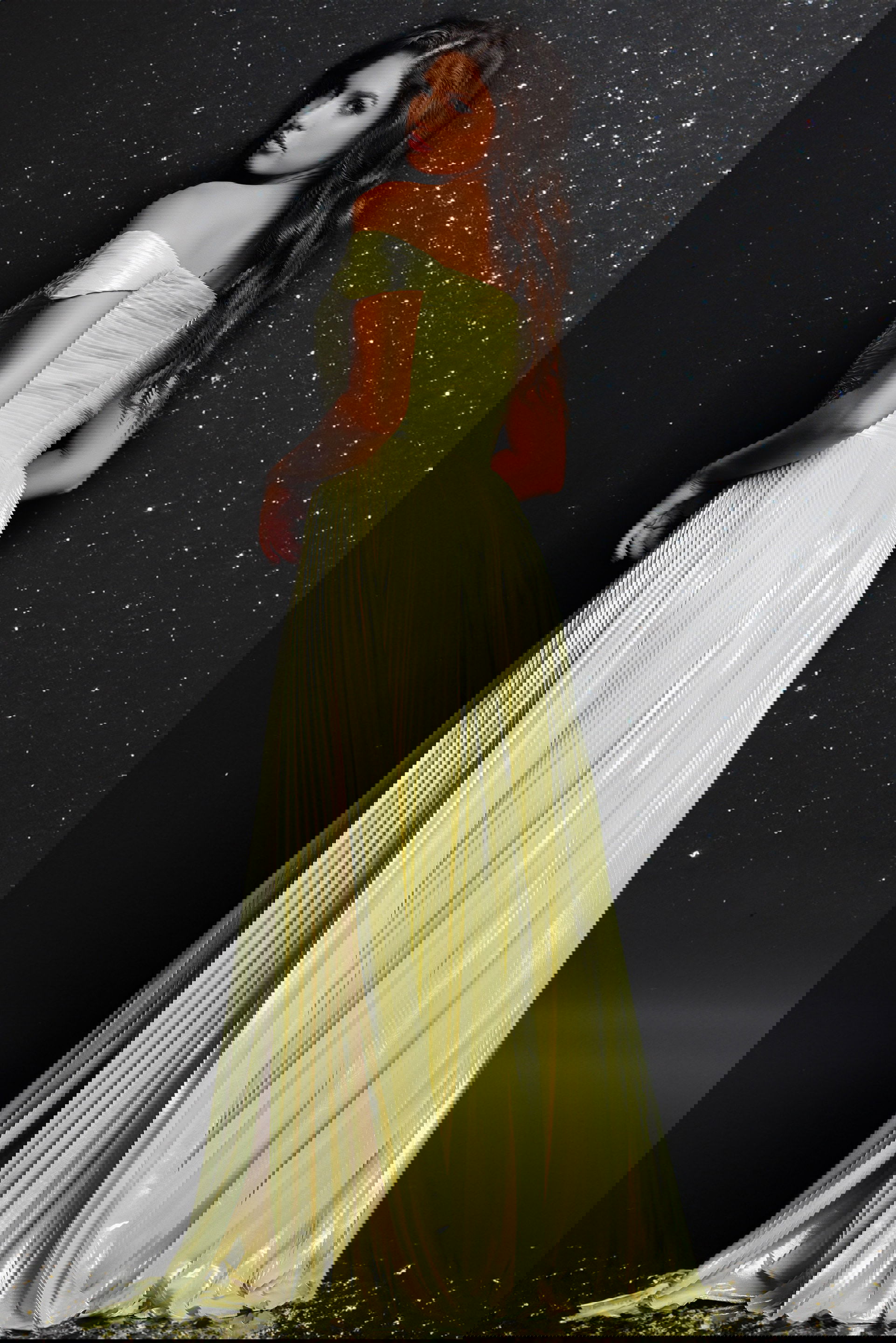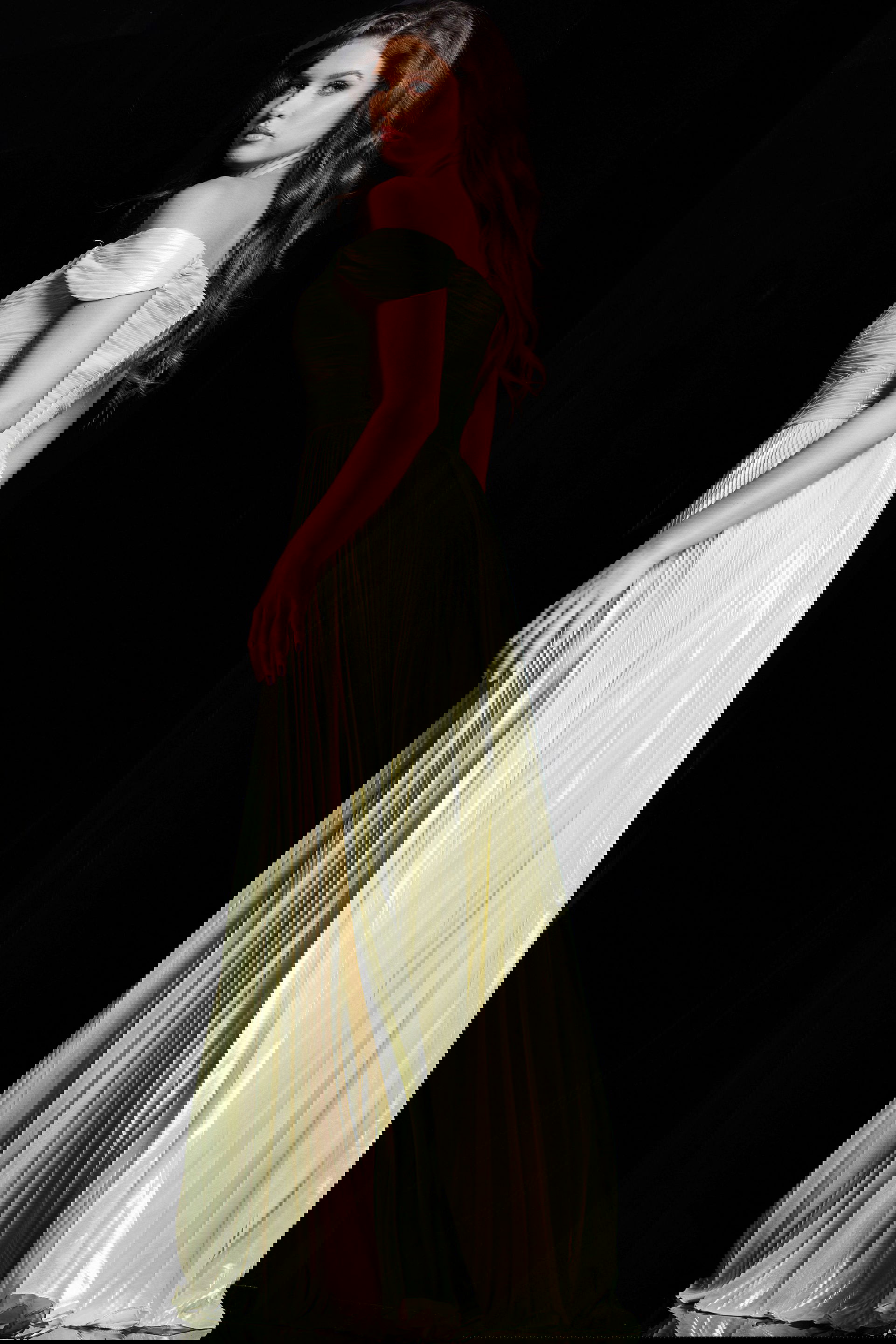 The Yellow Off The Shoulder Pleated Dress 37389 is a stunning, elegant piece that showcases a sophisticated yet sensual style. This dress features a floor-length A-line silhouette, providing a perfect blend of comfort and grace. The off-the-shoulder neckline adds a touch of romance and femininity, while the pleated satin fabric enhances its luxurious and refined appeal. The dress is accentuated by a high slit, adding a daring flair to its classic design. With its sleeveless style, it is ideal for glamorous evening events and formal occasions.